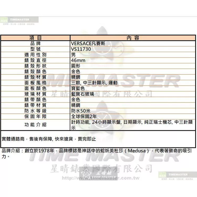 VERSUS VERSACE凡賽斯精品錶,編號:VV00404,34mm圓形金色精鋼錶殼銀白色錶盤精鋼金銀相間錶帶