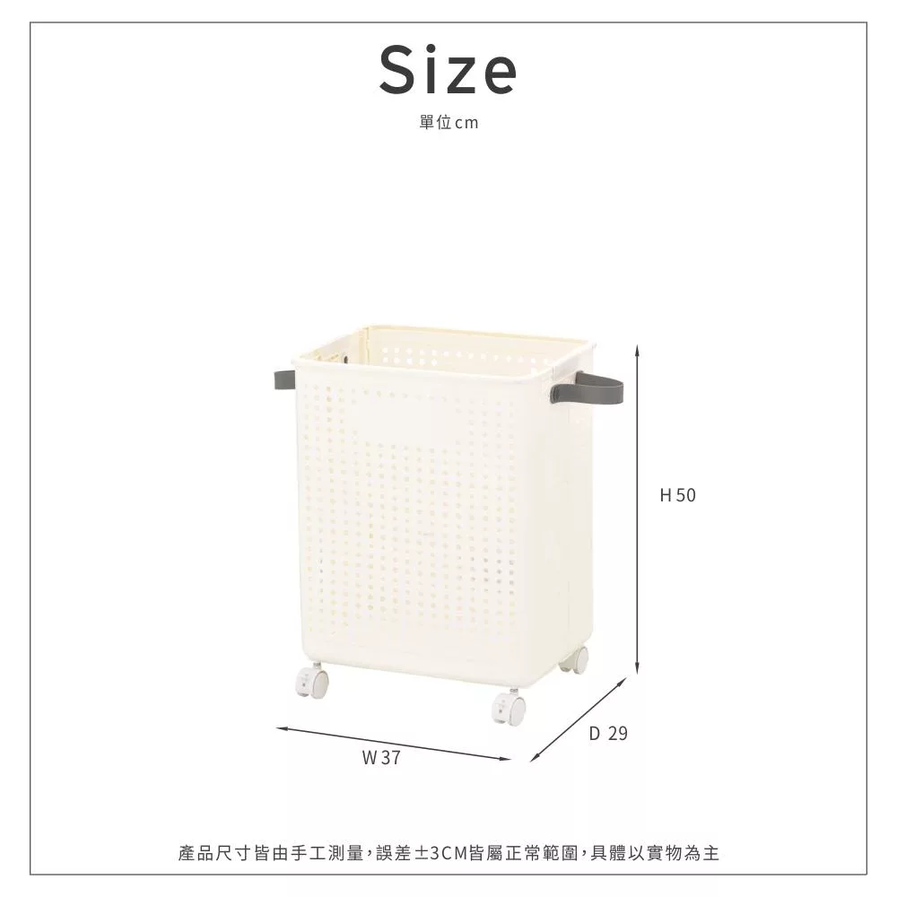 內尺寸:長36.2x寬29.5x高48.5CM±5%(約50L)