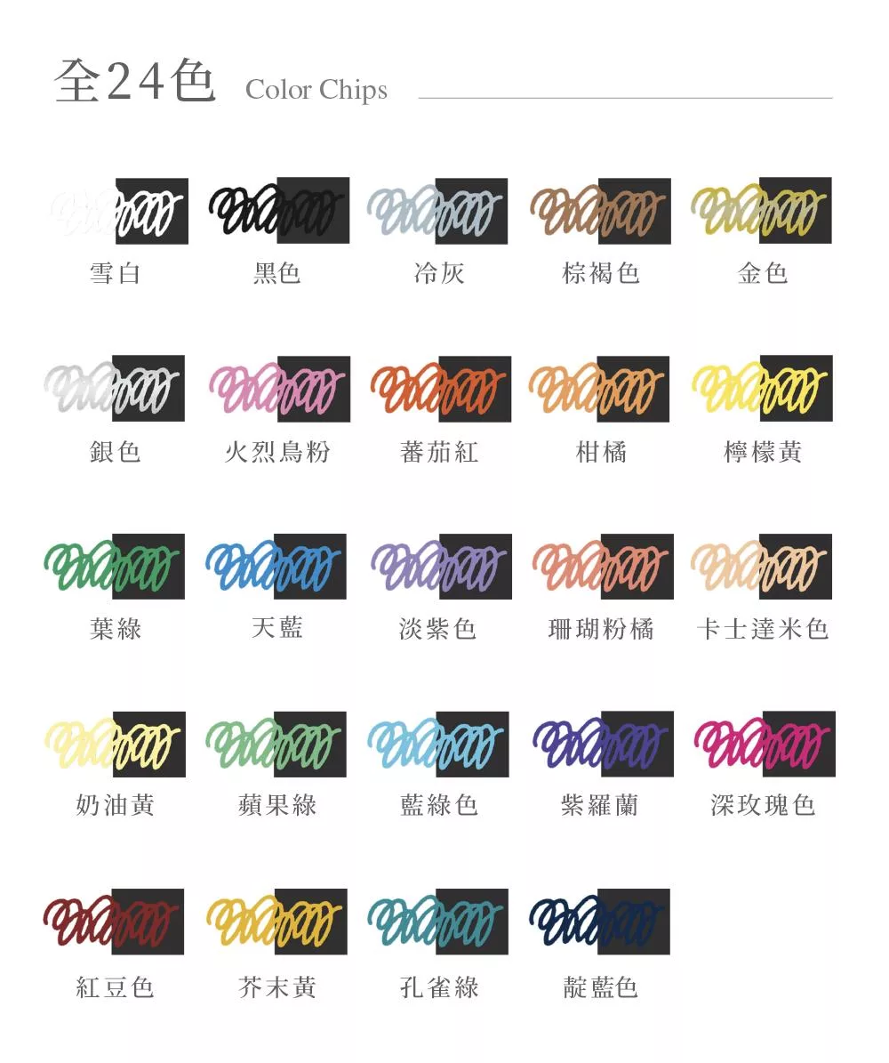 具有 24 種不透明色調,從雪白到多汁的粉彩和閃亮的金屬色。