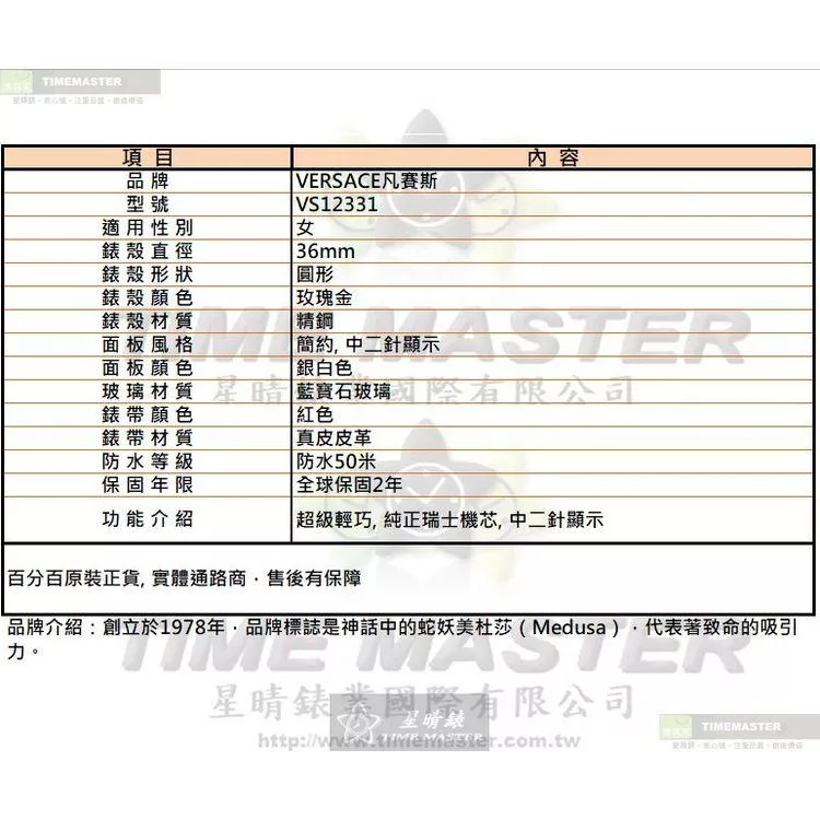 VERSACE凡賽斯VS12331女錶,展現優雅魅力與卓越工藝。