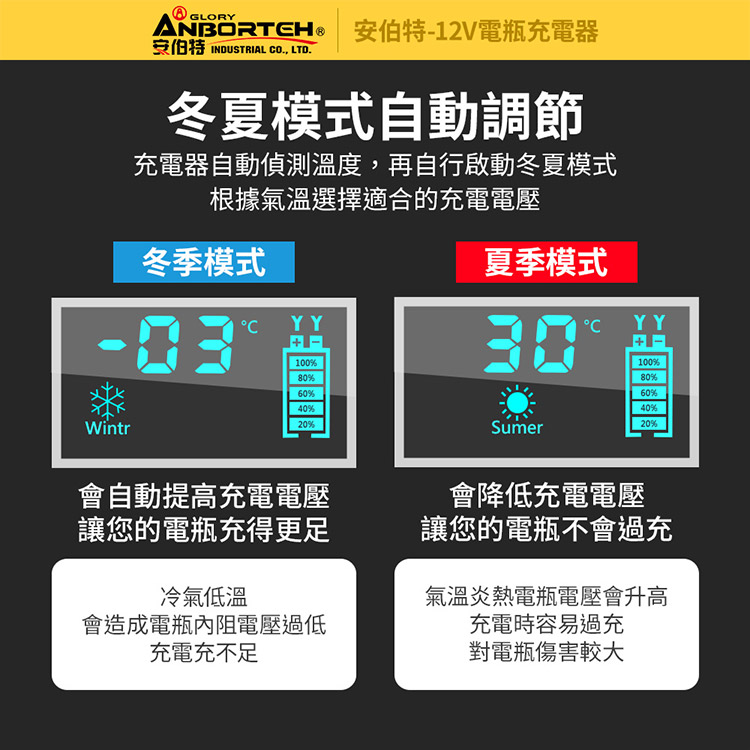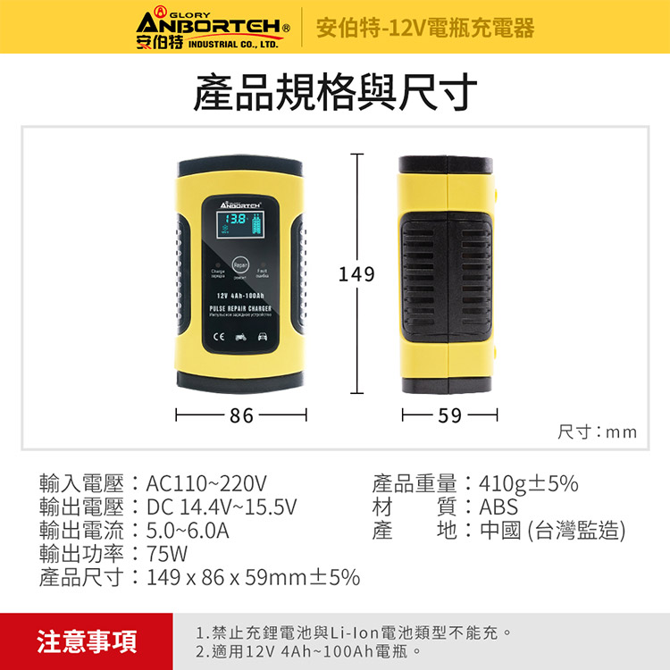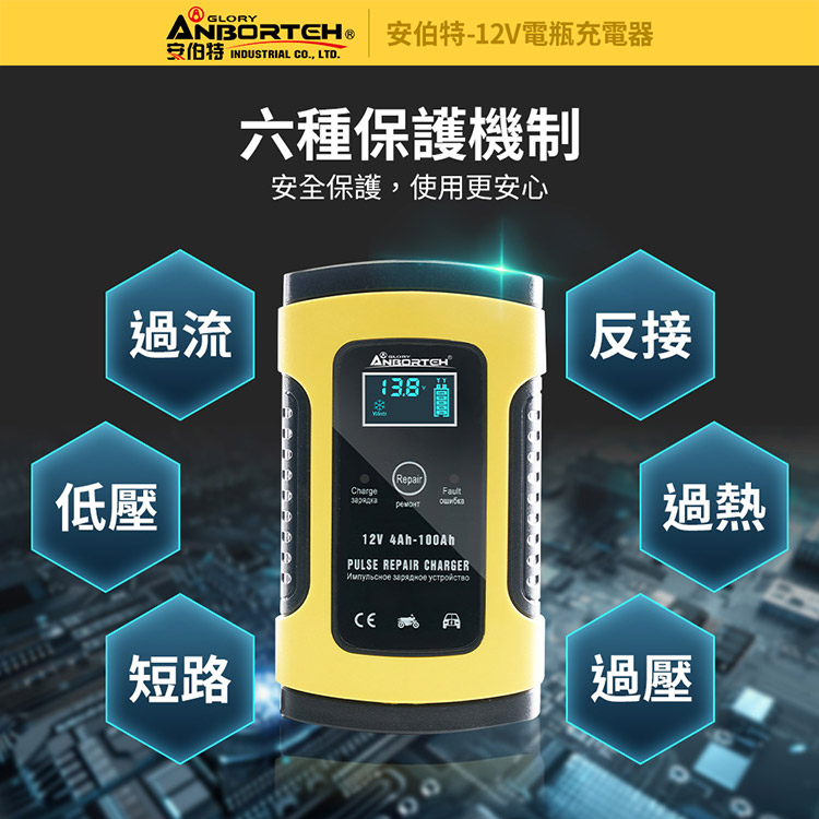【安伯特】12V修復電瓶充電器(汽車/機車/小貨車/電瓶修復)
