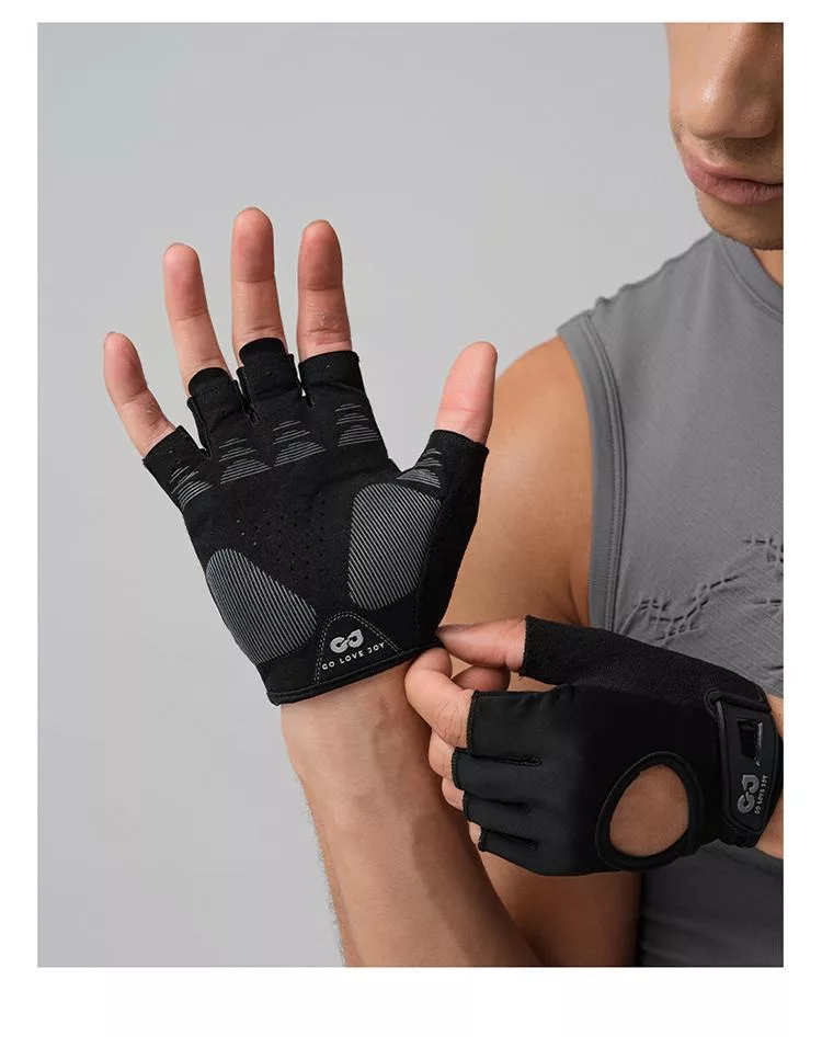 混搭配色全方位新穎設計!! 掌墊加厚款 GOLOV.EJOY 運動健身手套 透氣高彈性 騎自行車 重訓 訓練 登山 釣魚 戶外活動 運動 露指 半指手套 星夜黑 S號