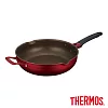 【THERMOS膳魔師】厚鑄耐摩不沾鍋單柄附耳深煎鍋30cm(KFJ-030W-R) 質感紅
