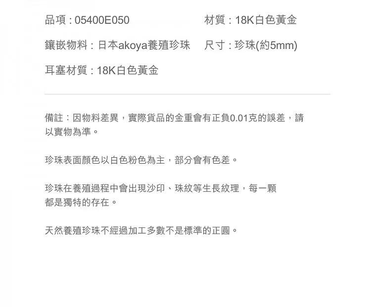 ●鑲嵌物料:日本Akoya養殖珍珠(東珠)
