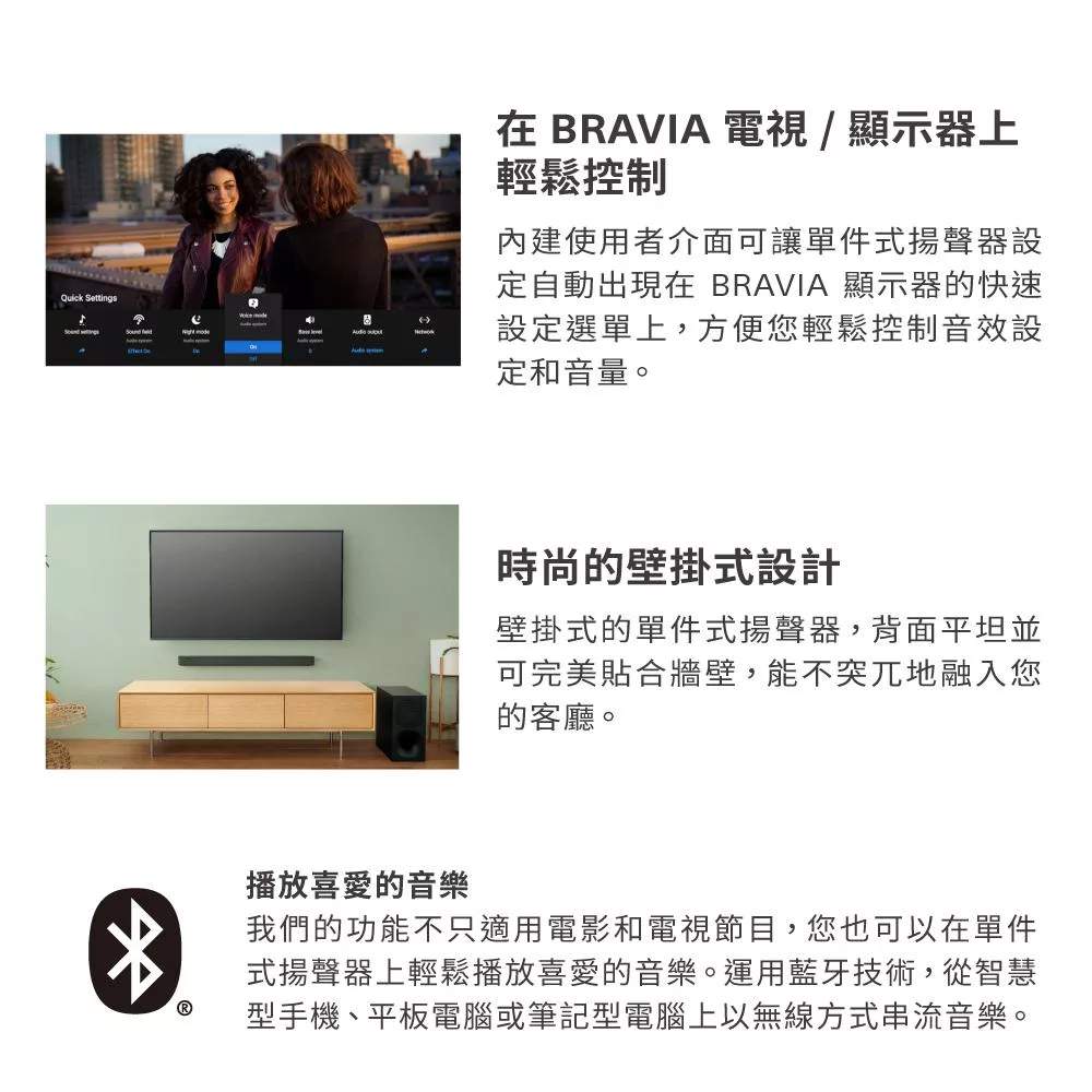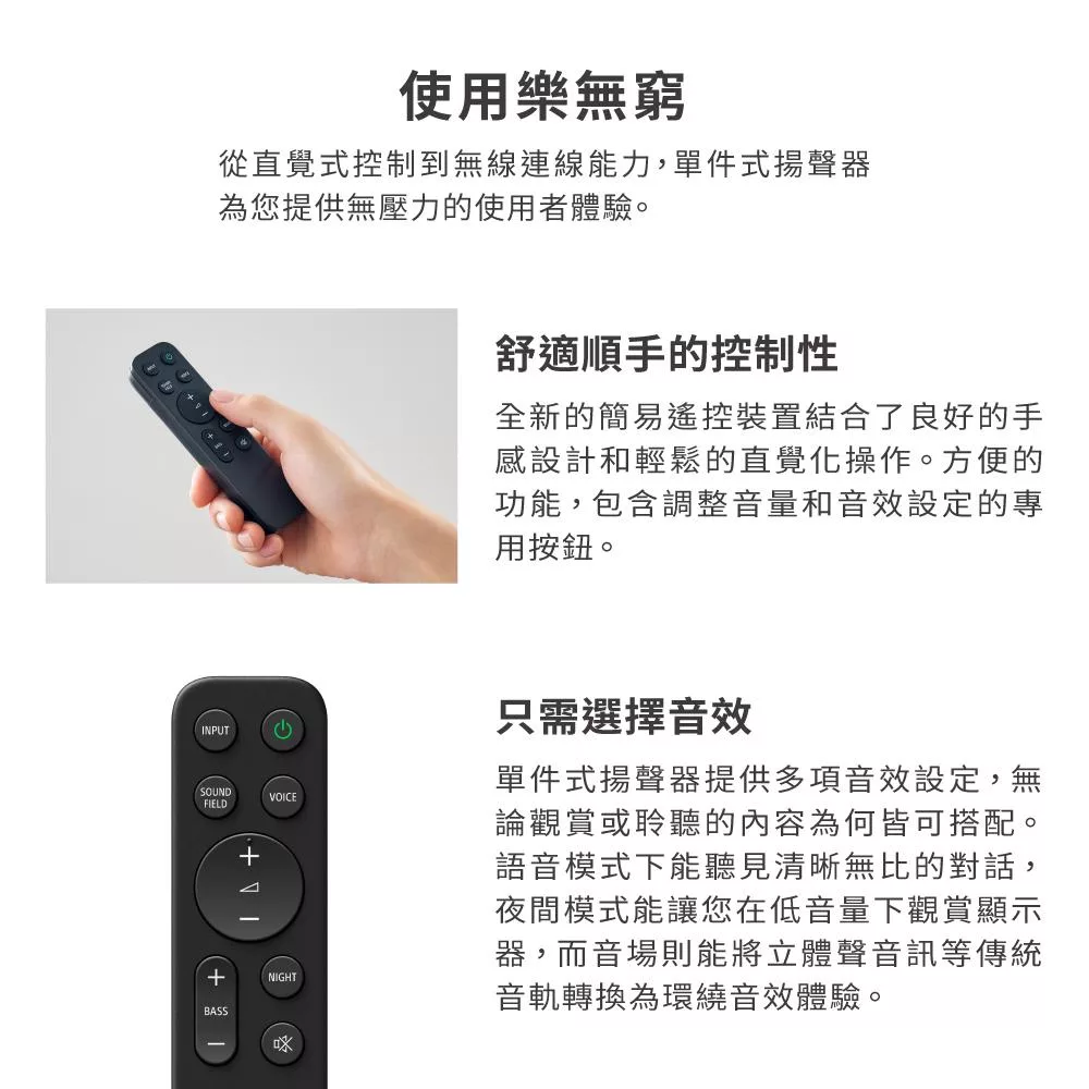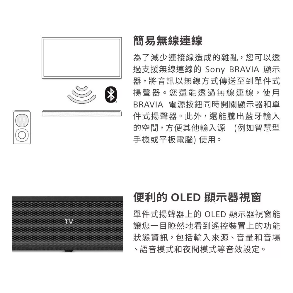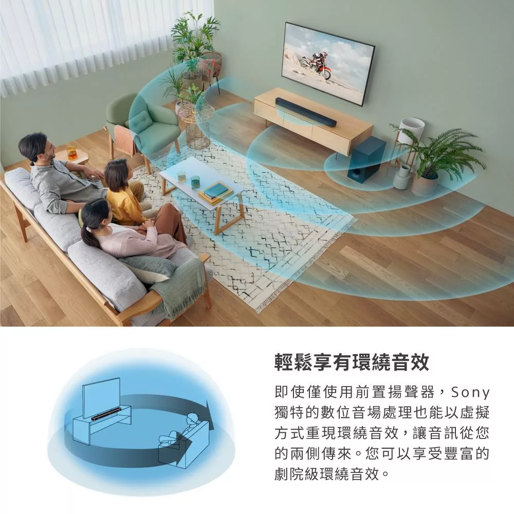 前置環繞聲場劇院級音效 330W 總輸出功率 HDMI ARC、光纖輕鬆連接