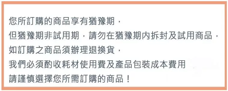 當您於此頁面下單表示您了解並同意下述規範,請注意!