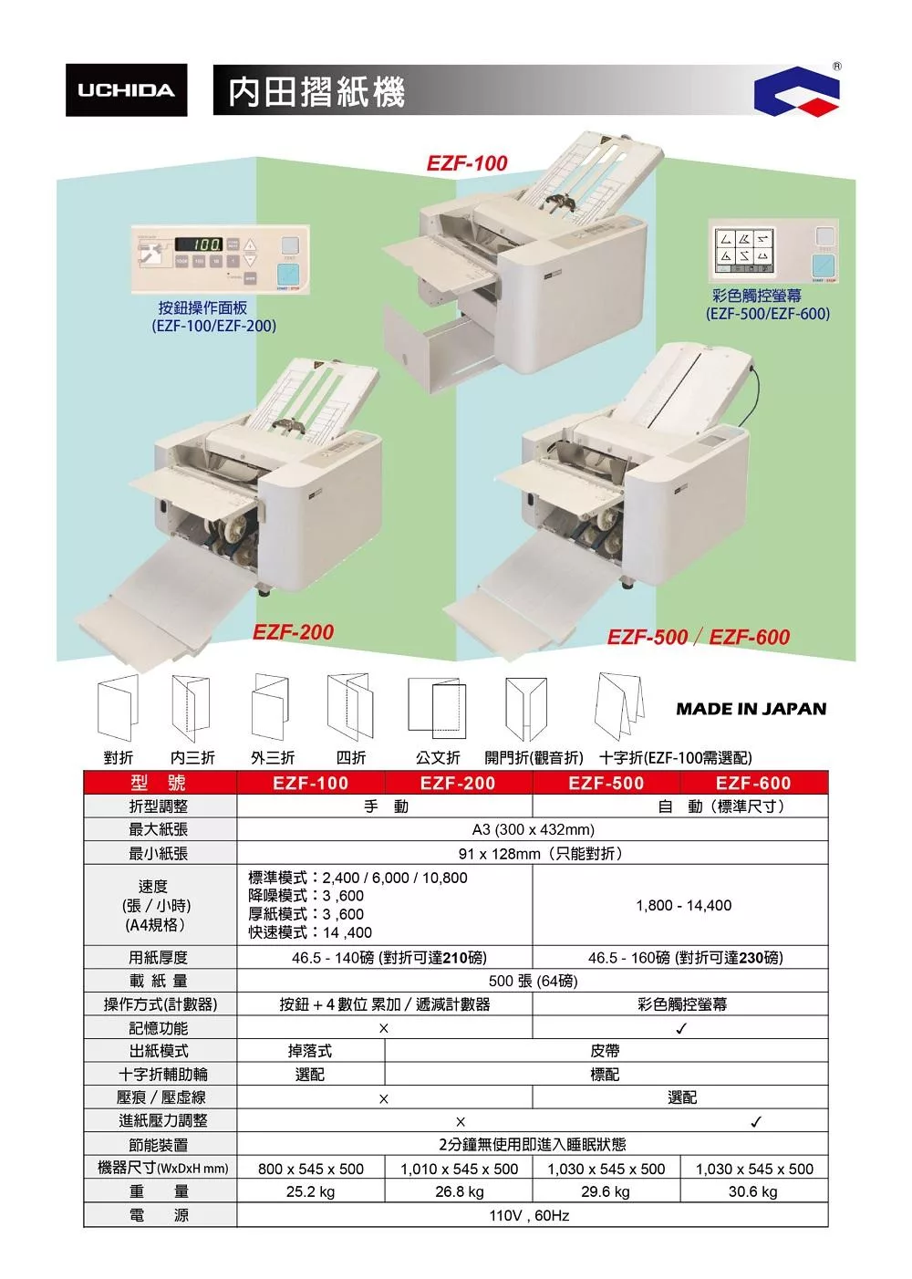 UCHIDA內田 EZF-200 摺紙機 桌上型專用機 F-30N升級版