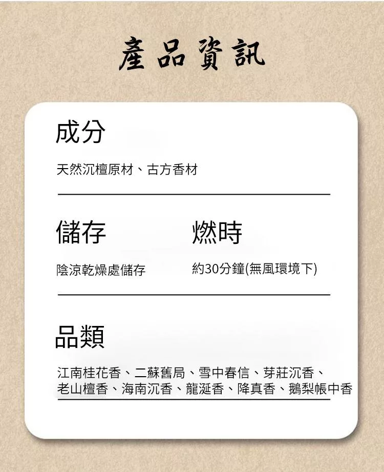 A組合:江南桂花香、雪中春信、鵝梨帳中香、二蘇舊局、龍涎香