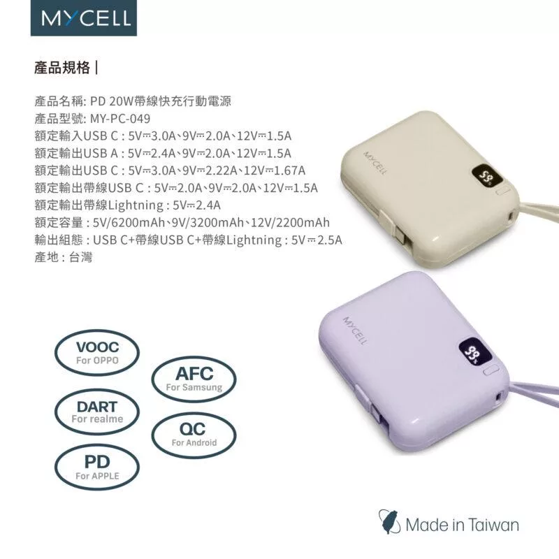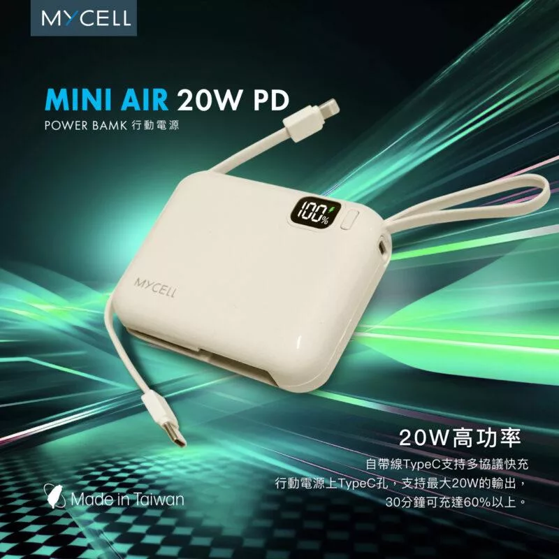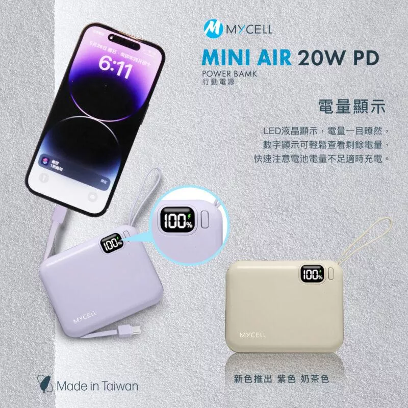 E-books B100【台灣製造】自帶雙線LED數顯20W快充版行動電源37Wh 奶茶