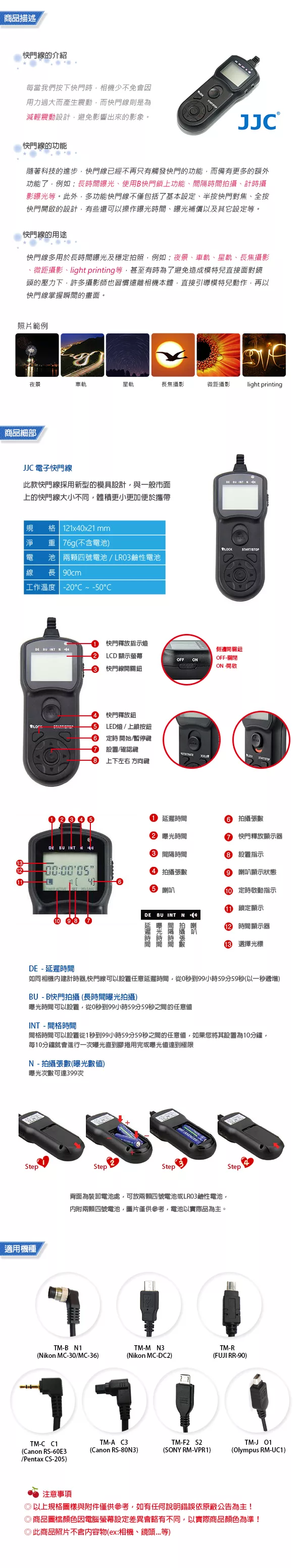 JJC TM-J 液晶定時快門線 O1(Olympus RM-UC1)