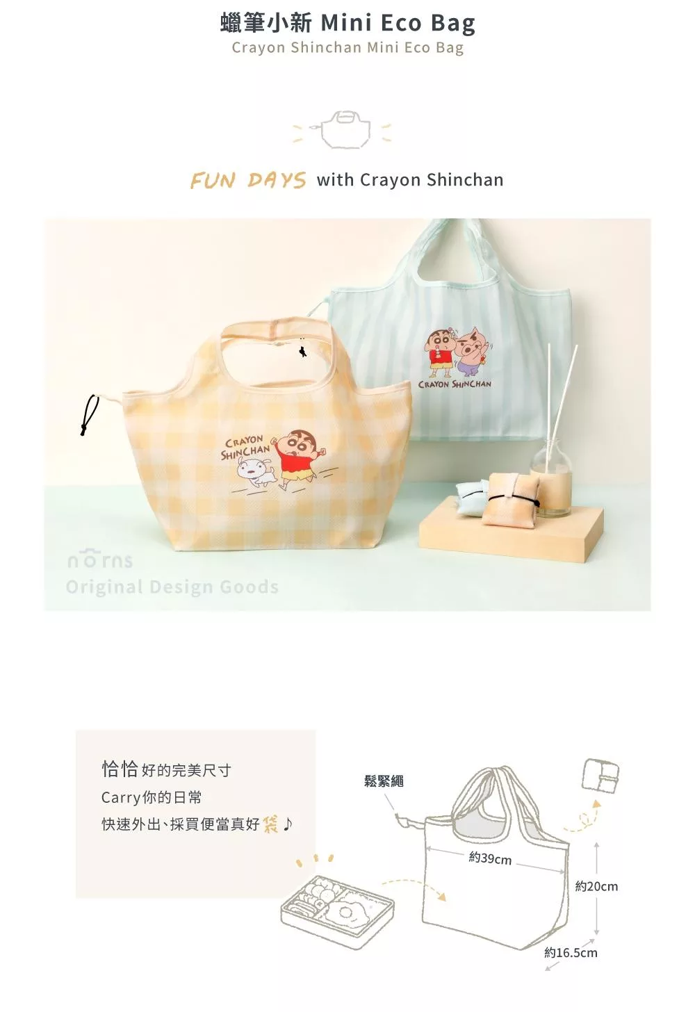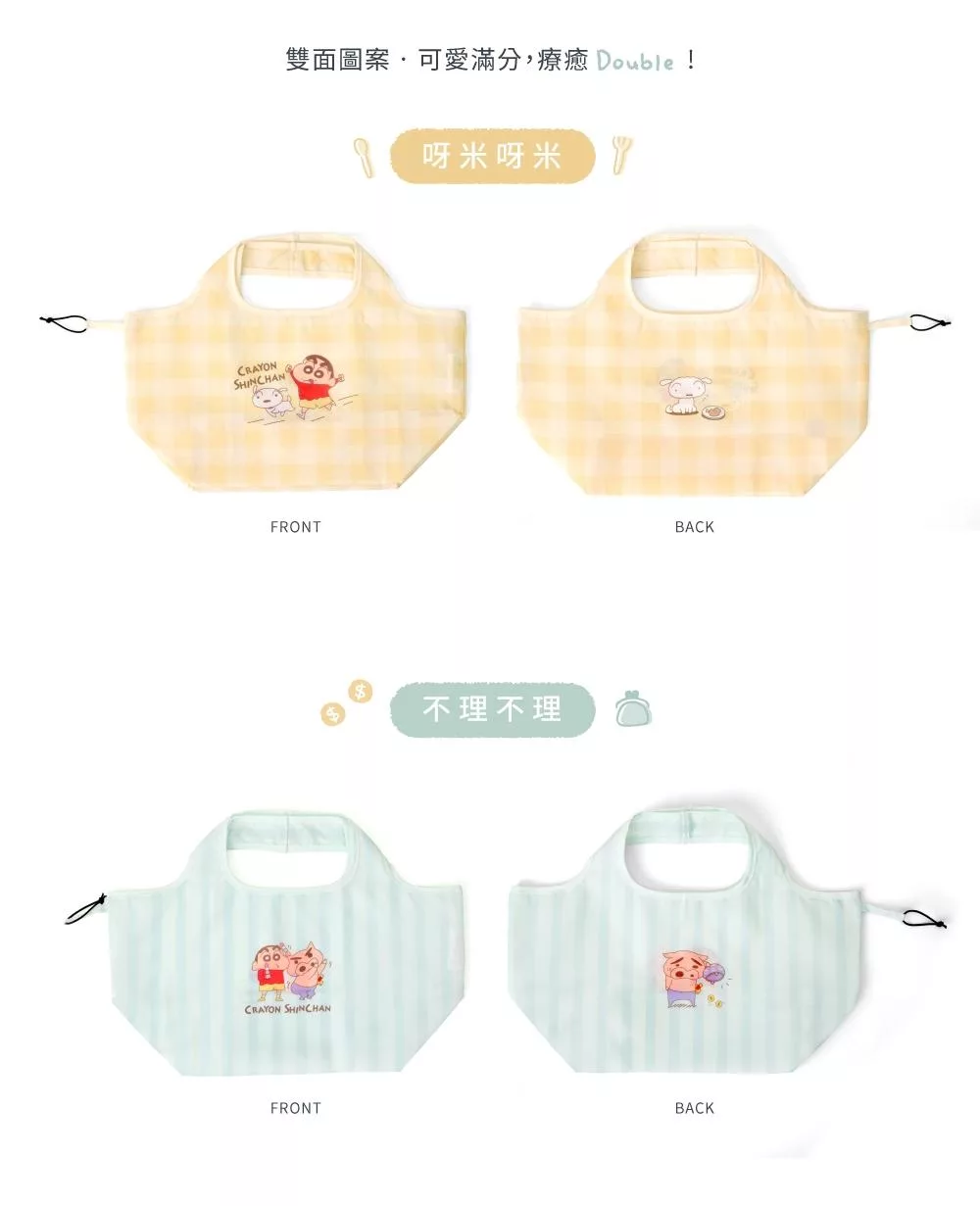 恰恰好的完美尺寸,Carry你的日常,快速外出、採買便當真好袋 雙面圖案,可愛滿分,療癒Double! Good Times with 蠟筆小新 為你應援日常需求