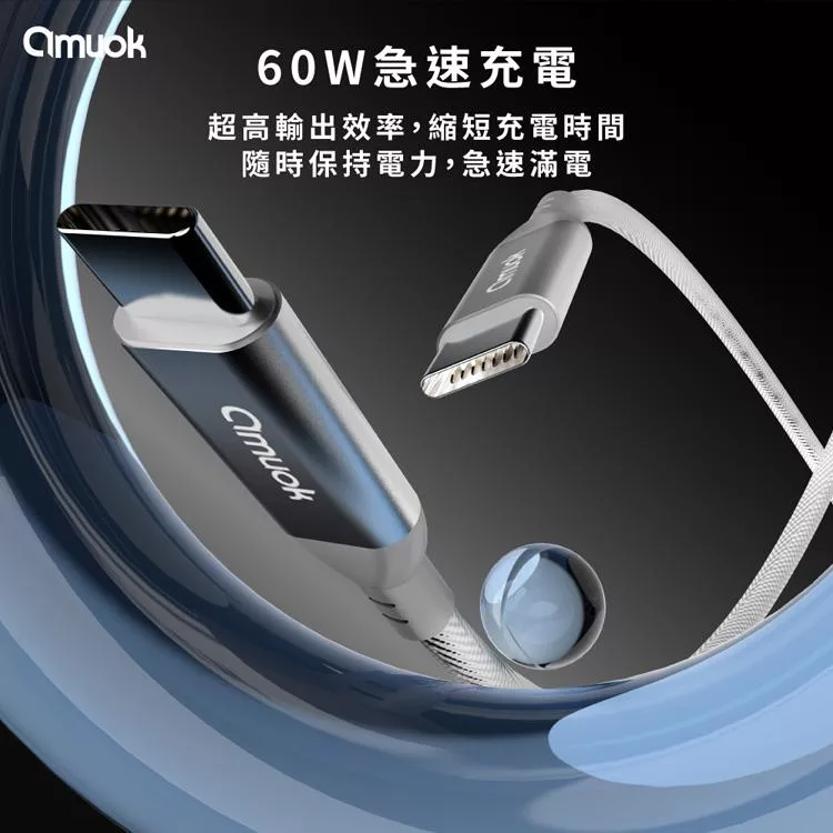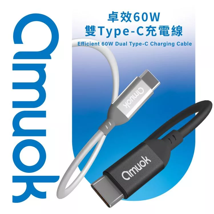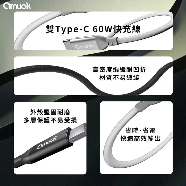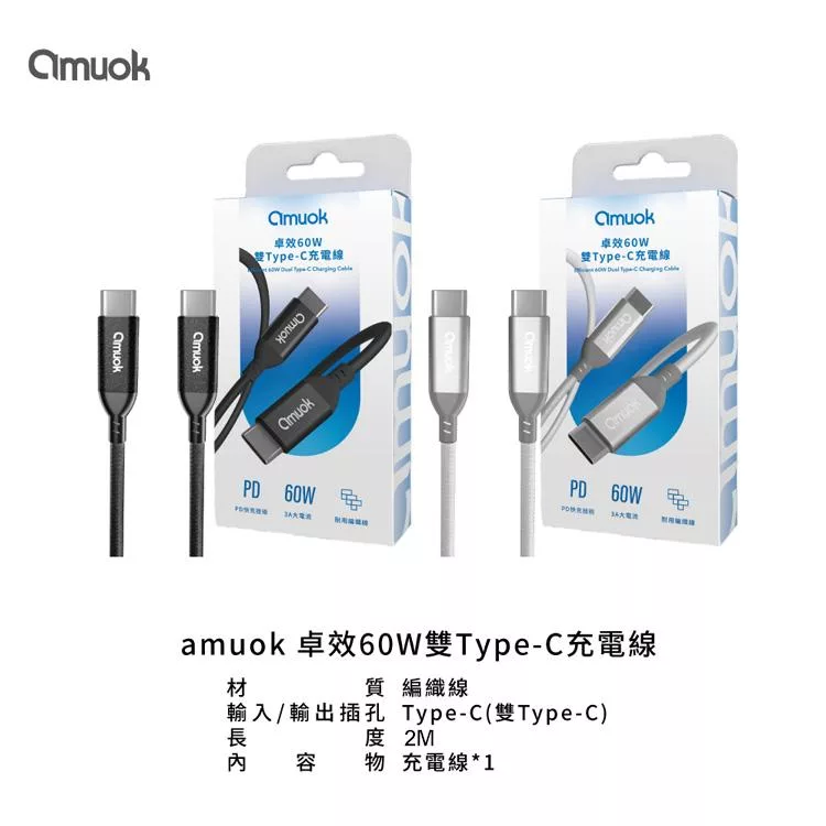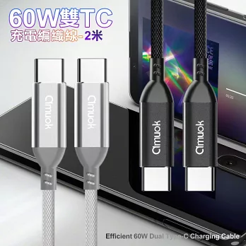 amuok 60W 卓效雙Type-C充電線 快充線 PD線 Type-C to Type-C-2米-2條一組