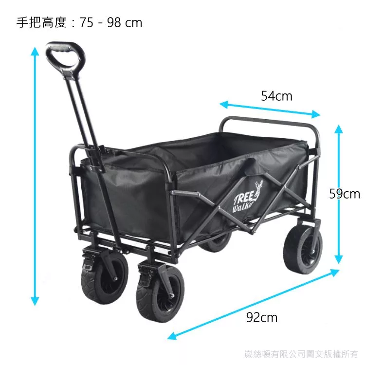 TreeWalker 可煞車露營手拉車、四輪推車-超值組合(推車+推桿)