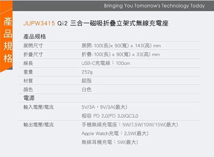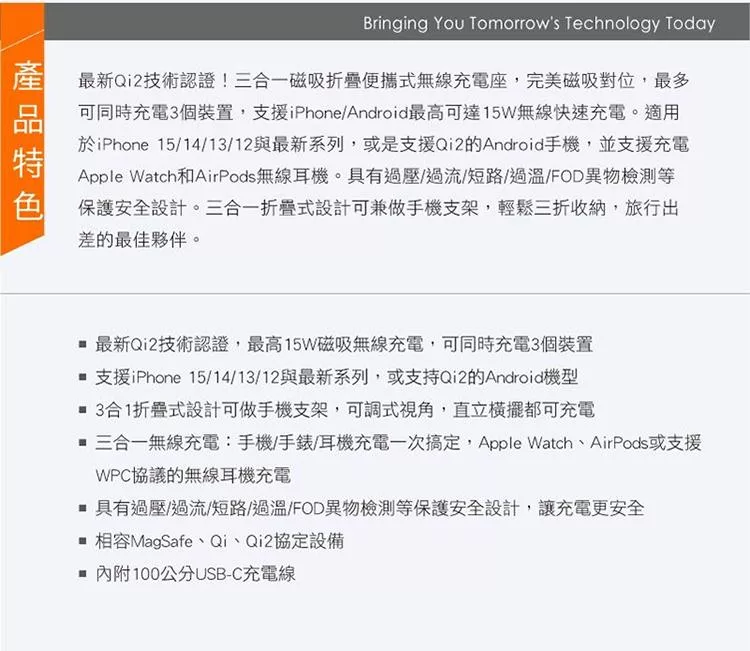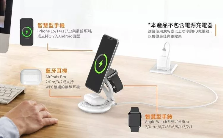 VXTRA 15W無線方舟 Magsafe磁吸折疊充電座 充電器 iPhone/Watch/Airpods/氛圍燈