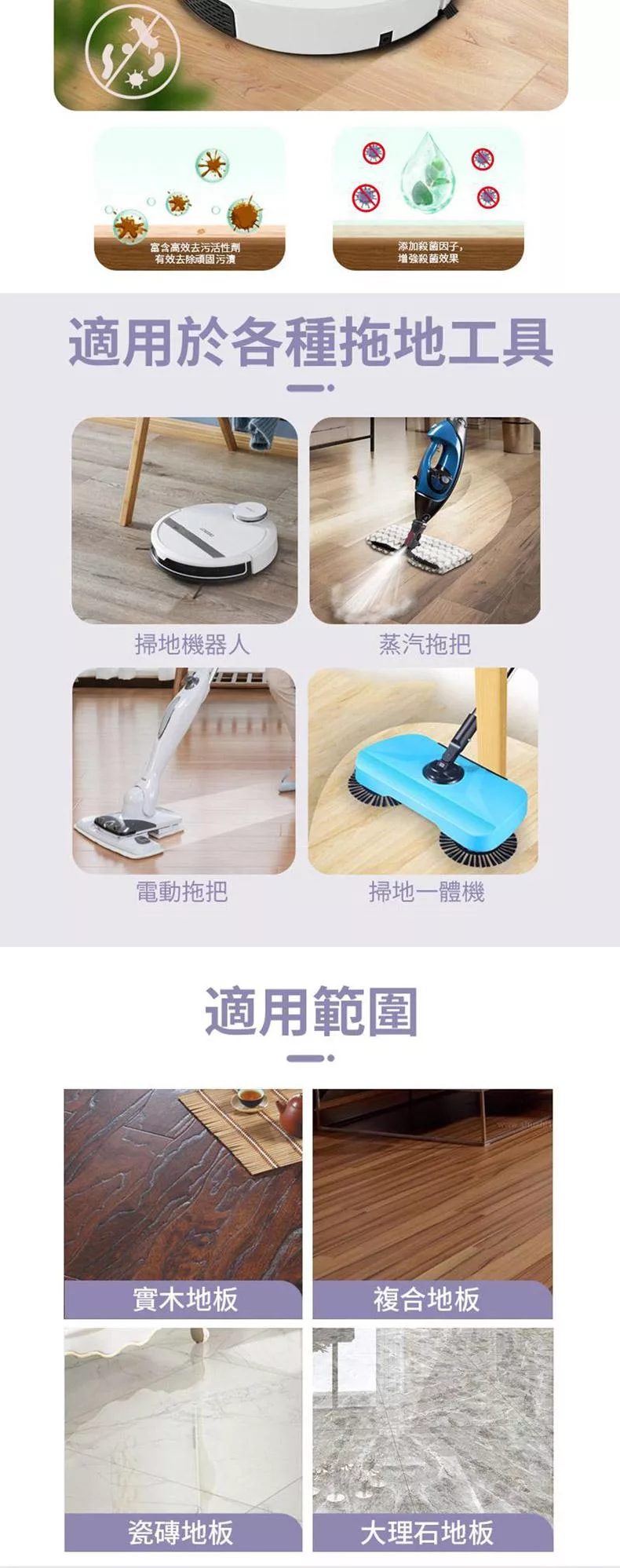 ✔拖地時,請用水稀釋本產品使用,勿添加其他液體,防止腐蝕水箱。