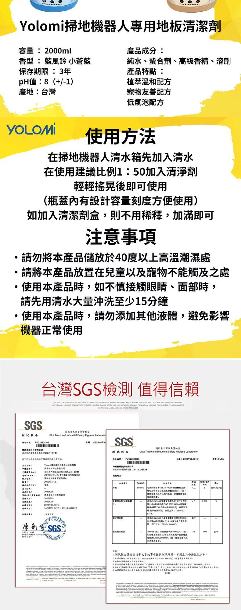Yolomi 掃地機器人專用清潔劑 清潔液 台灣製造 石頭 追覓 科沃斯 小米 必勝 LG 適用