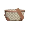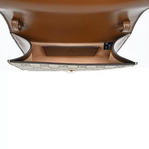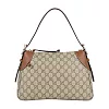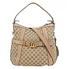 GUCCI 金色GG Logo 緹花布及皮革肩背/斜背包_展示品 (卡其/粉膚)