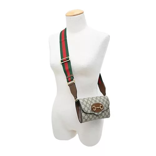 GUCCI GG Emblem 塗層帆布及皮革腰包/胸口包 (烏木/深棕色)