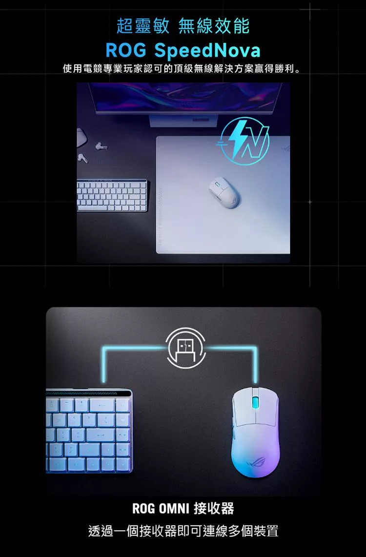【送原廠輪詢率加速器+電競鼠墊】ASUS 華碩 ROG KERIS II ORIGIN 無線三模電競滑鼠 白色