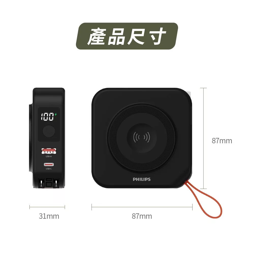 10000mAh行動電源 FunCube 2.0多合一 螢幕顯示 磁吸充電 自帶線設計 無線充電 手機支架功能 四色可選 飛利浦品牌 快速充電