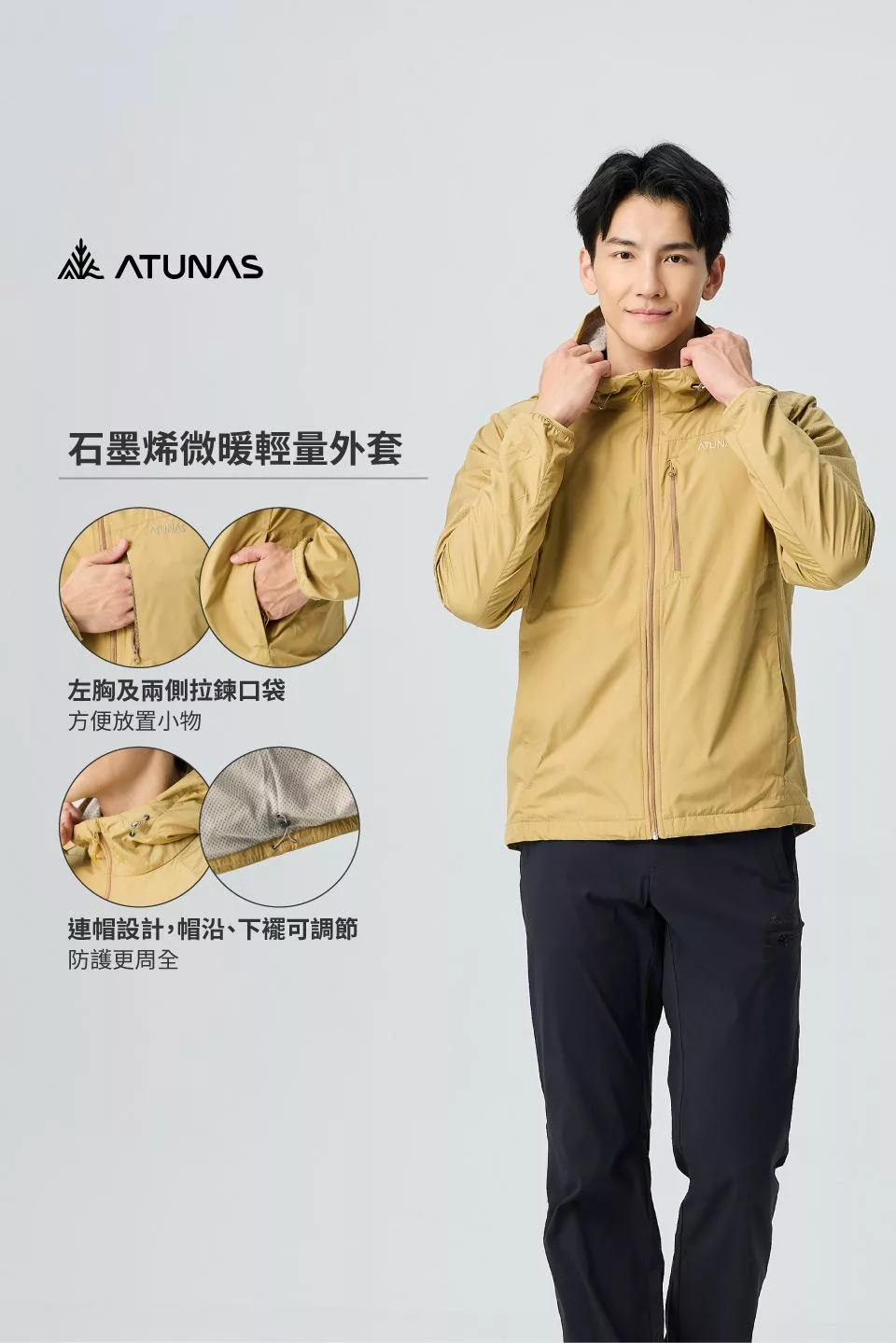 【ATUNAS 歐都納】男款防水透濕石墨烯科技纖維單件式連帽外套/大尺碼A1GA2535M- M 金黃棕