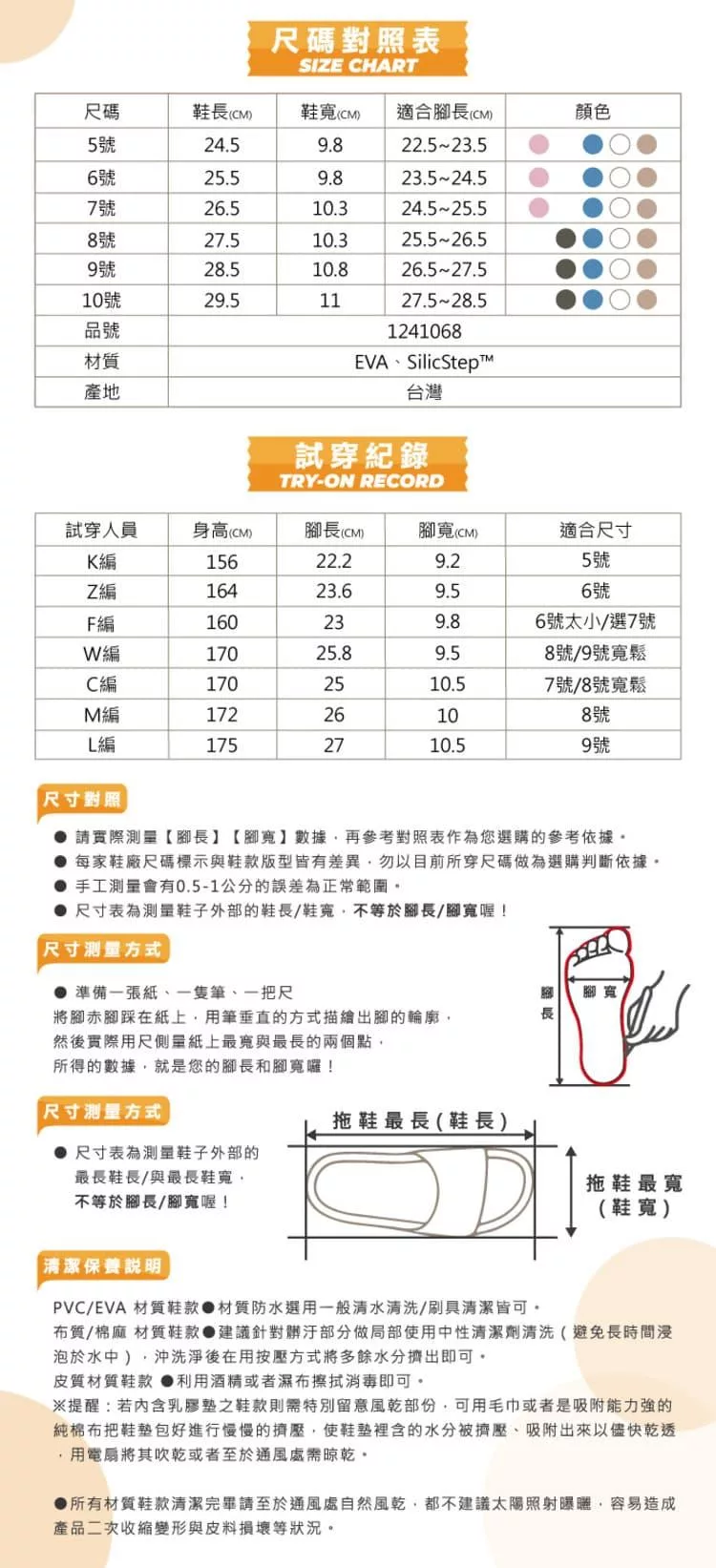 (1)鞋底磨損 (請於室內,軟墊上試穿SIZE)。