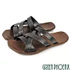 【GREEN PHOENIX】男 拖鞋 平底拖鞋 真皮 交叉 手工 室內 室外 EU39 黑色