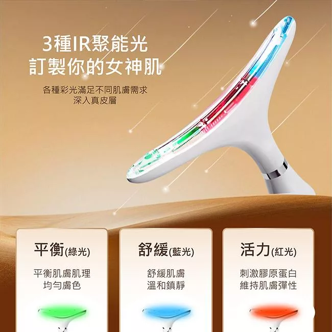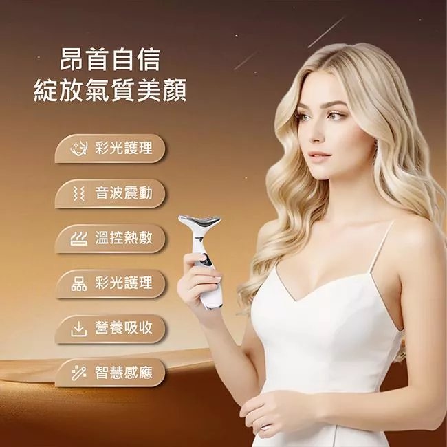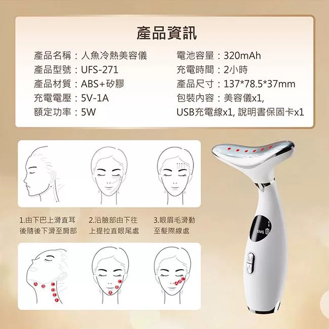 【Obeauty 奧緹】人魚冷熱美容儀- LED三彩光臉/頸兩用音波震動塑造輪廓之美(UFS-271) 白色
