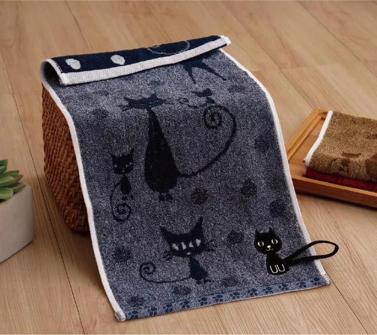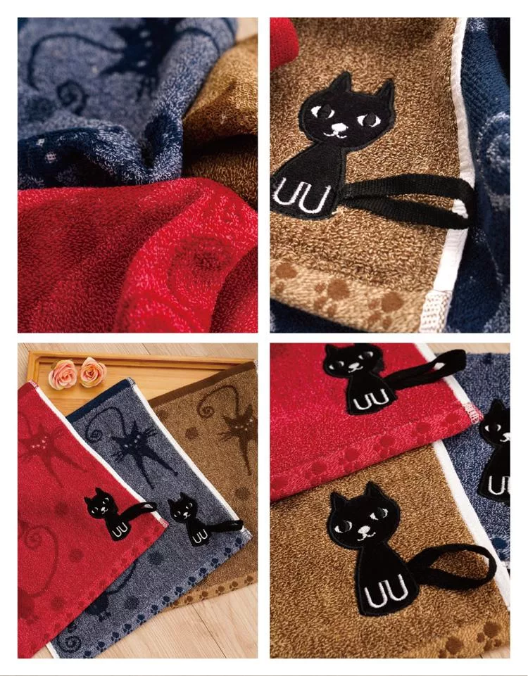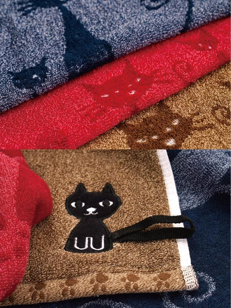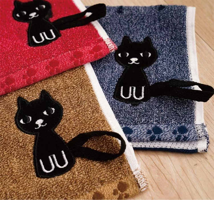 【MORINO】純棉動物貼布繡浴巾/兒童浴巾/寶寶浴巾 水藍色(貓咪)