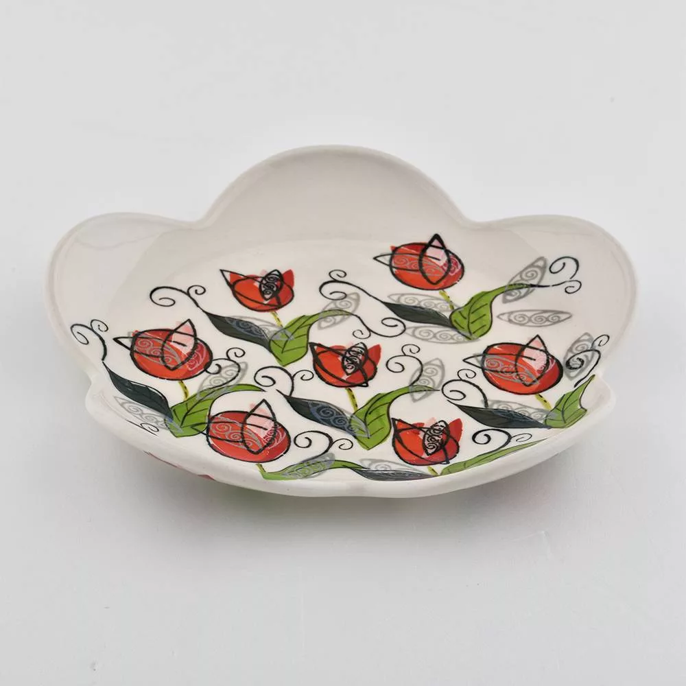 【日本Marusan Kondo】Polish波蘭碎花 陶瓷淺盤16cm ‧ 花叢