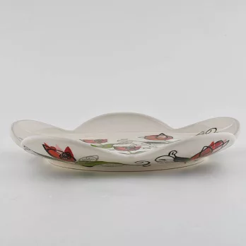【日本Yamani】美濃燒|貓咪文樣 陶瓷淺盤16.5cm ‧ 唐草