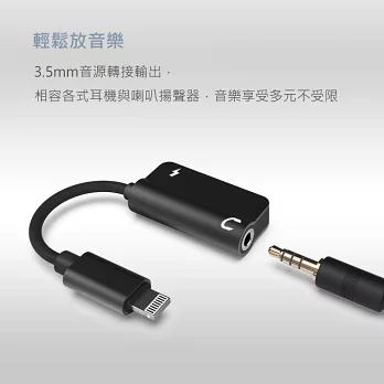 | 便利操作 支援最新 iOS版本,免驅動免設定,隨插隨用無需等待 精選線材 高純度銅線傳遞優高品質音樂,可同時輸出最大2.0A電流 細膩質感 鋁合金外殼,線材強化包覆防拉扯,5倍耐用享受再升級 便利娛樂 通用3.5mm音源轉接,可使用於一般耳機/喇叭揚聲器 |