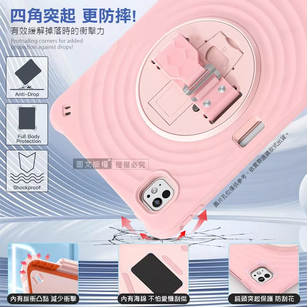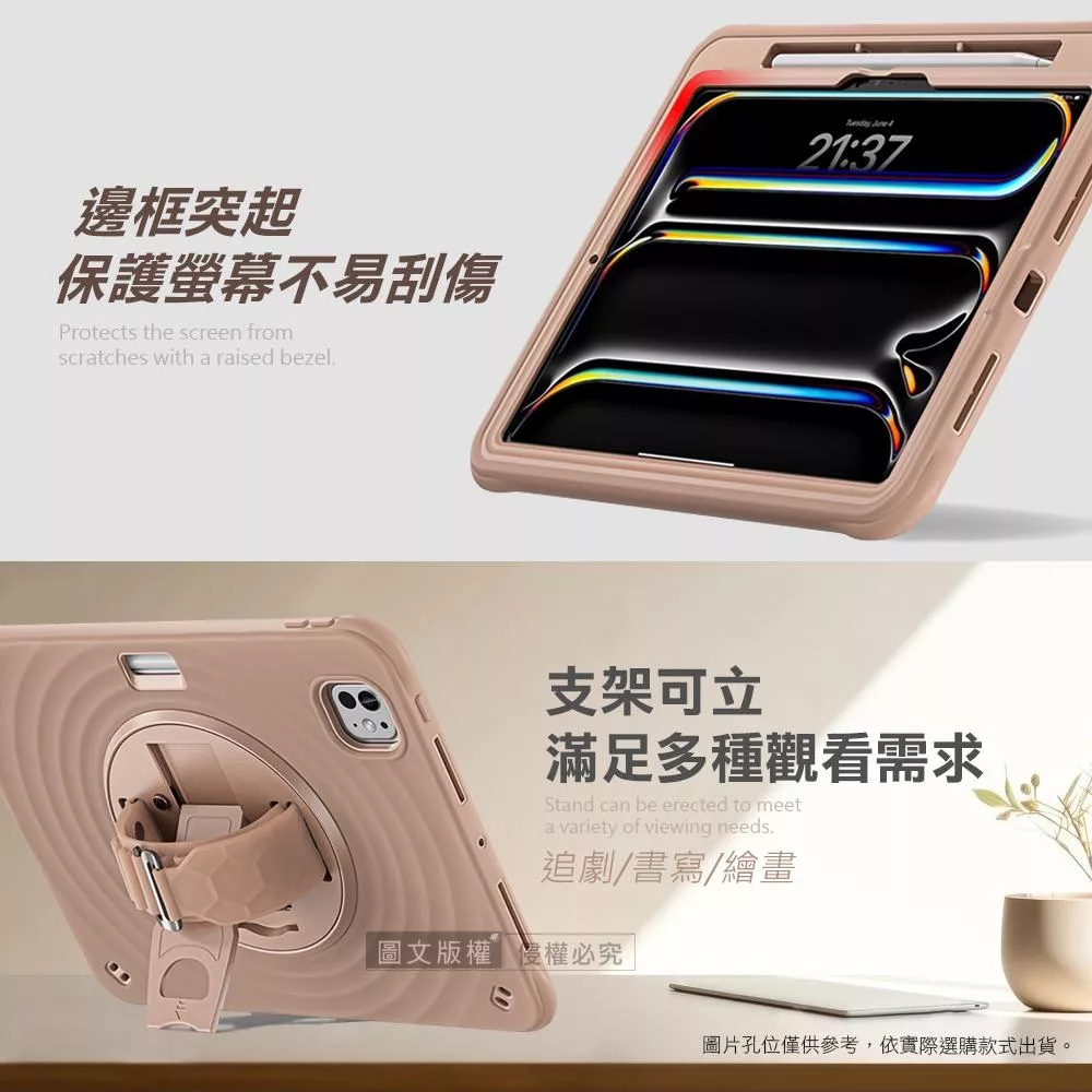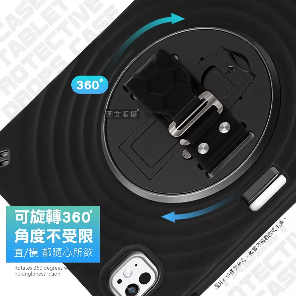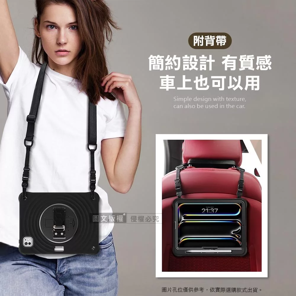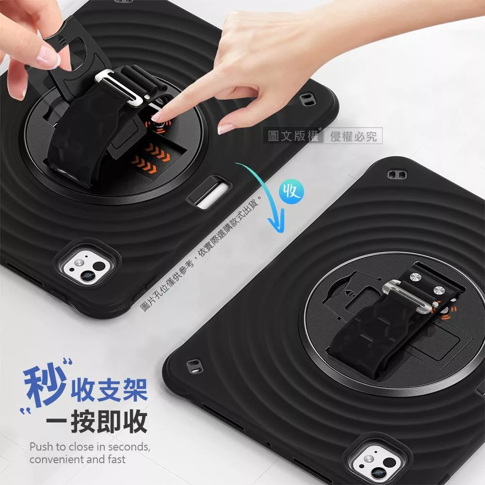 | 360°旋轉│秒收支架│多角度調節 四角突起更防摔,全包覆保護,橫豎都能使用! 可用背帶,也可手提,輕鬆帶愛機出門~ |