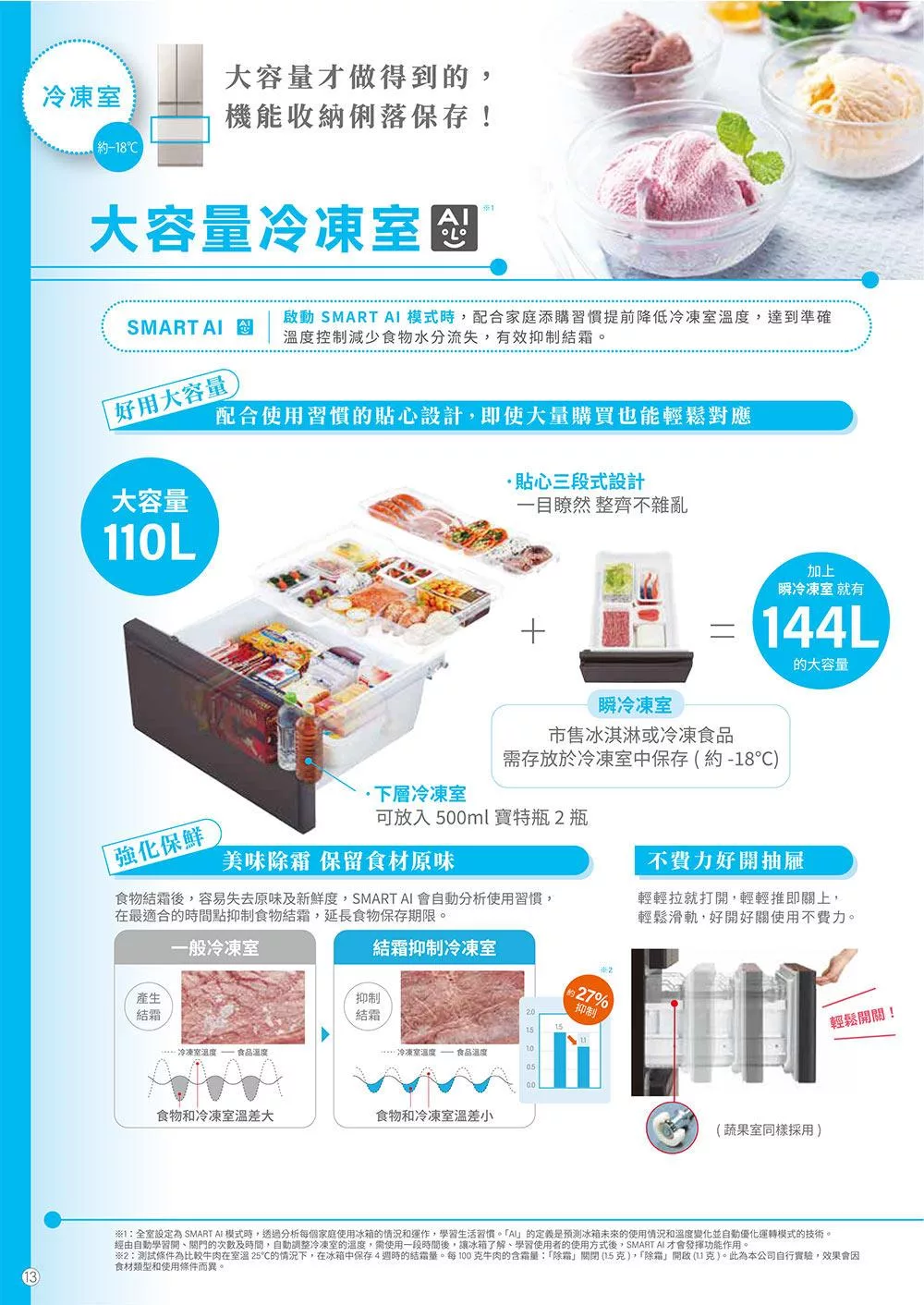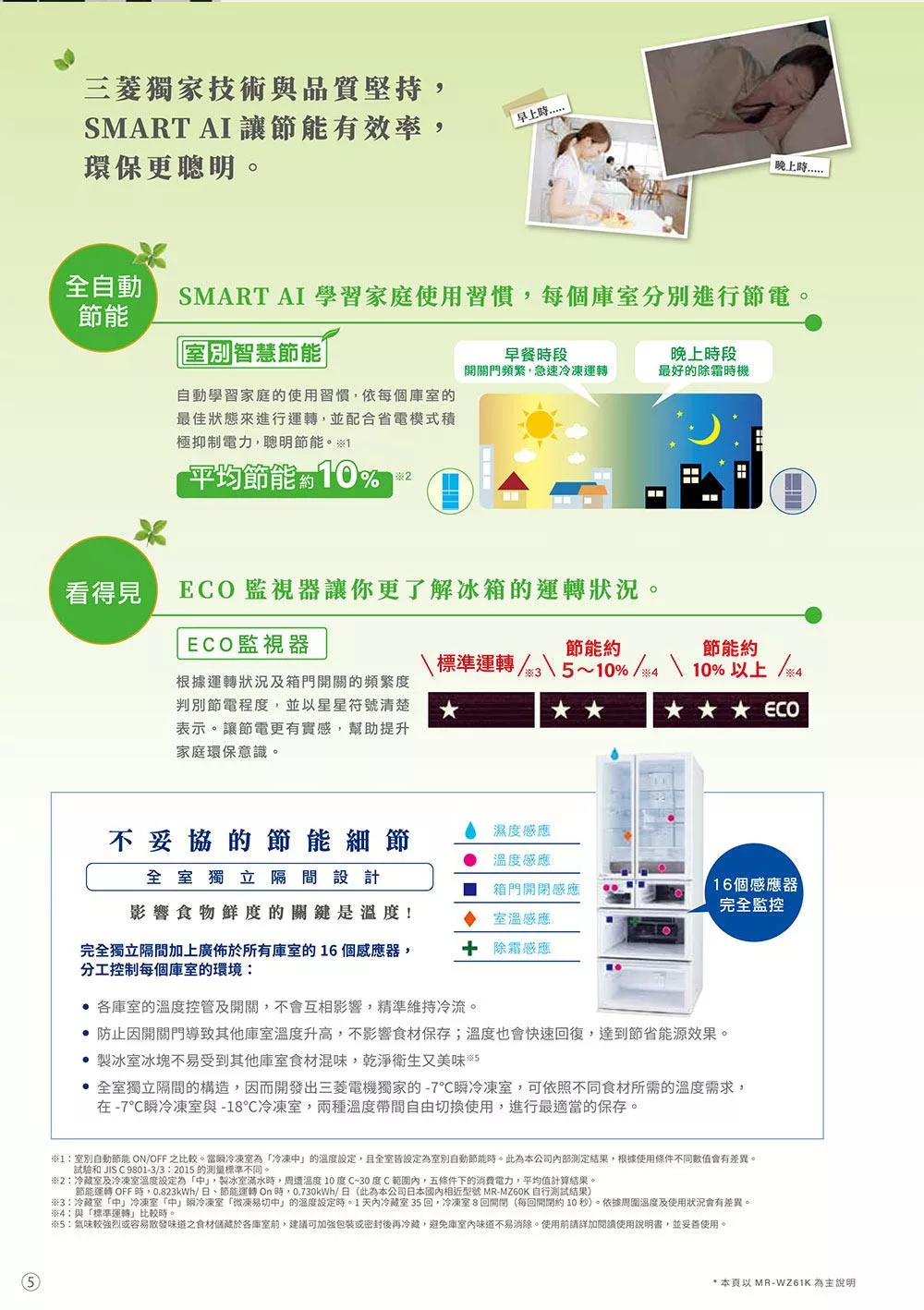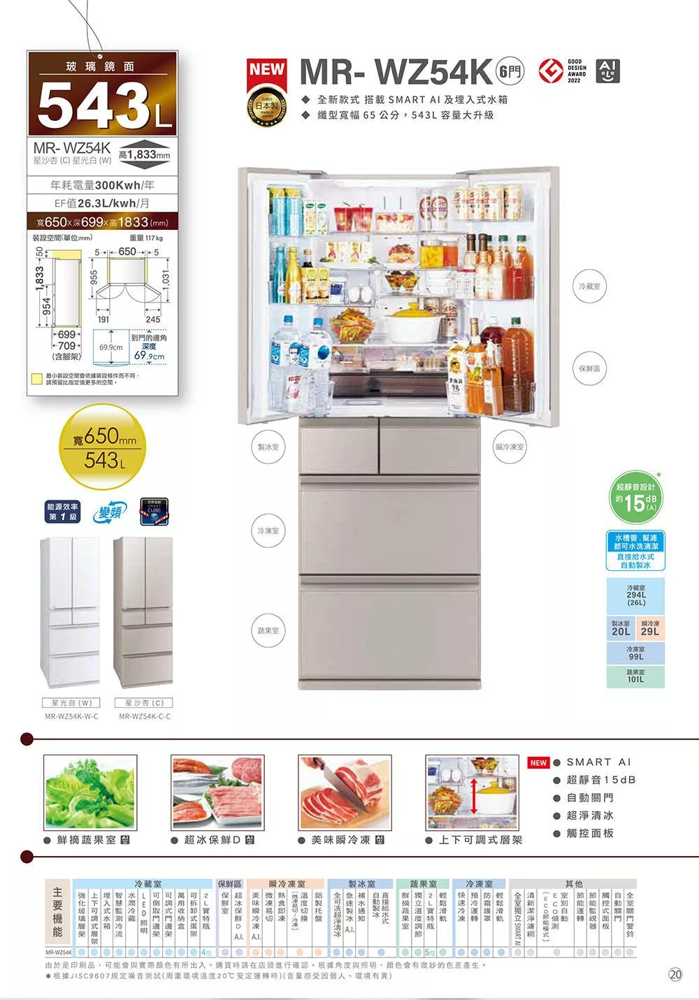 三菱543L日本原裝變頻六門電冰箱MR-WZ54K-C星沙杏