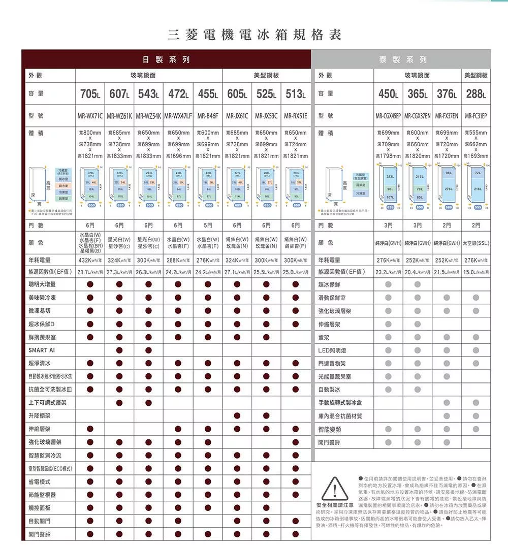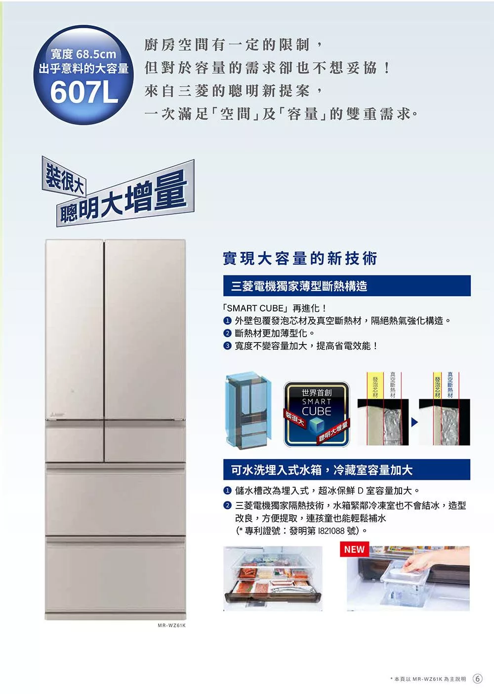 三菱607L日本原裝變頻六門電冰箱MR-WZ61K-C星沙杏