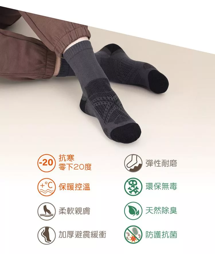 oillio歐洲貴族 加厚美麗諾羊毛襪 氣墊舒適 保暖襪 健行登山襪 防護 機能 50%羊毛 中筒襪 灰色