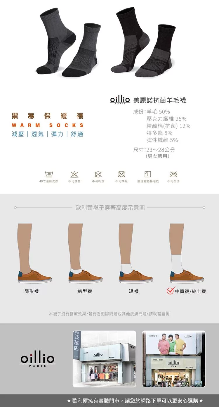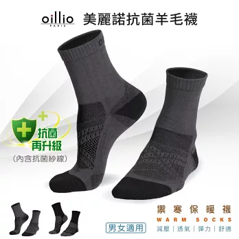 oillio歐洲貴族 頂級美麗諾羊毛襪 天然除臭 夏日舒適乾爽 冬日保暖 防護 機能 50%羊毛 中筒襪 灰色 23115160