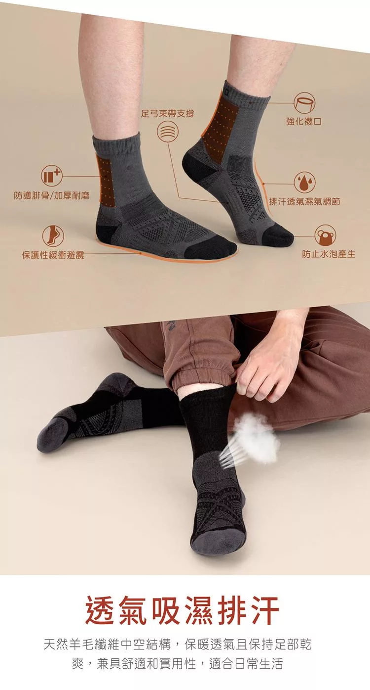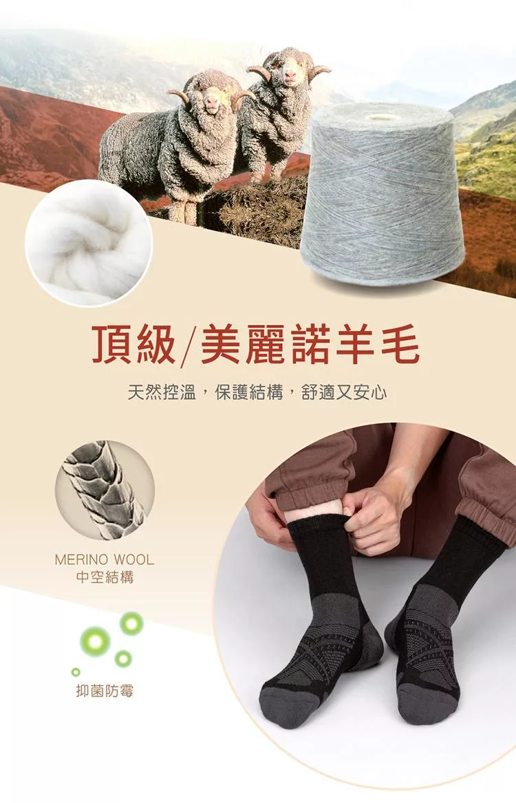 oillio歐洲貴族 頂級美麗諾羊毛襪 天然除臭 夏日舒適乾爽 冬日保暖 防護 機能 50%羊毛 中筒襪 駝色 23115120
