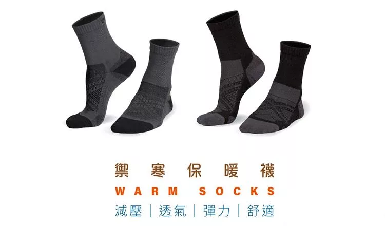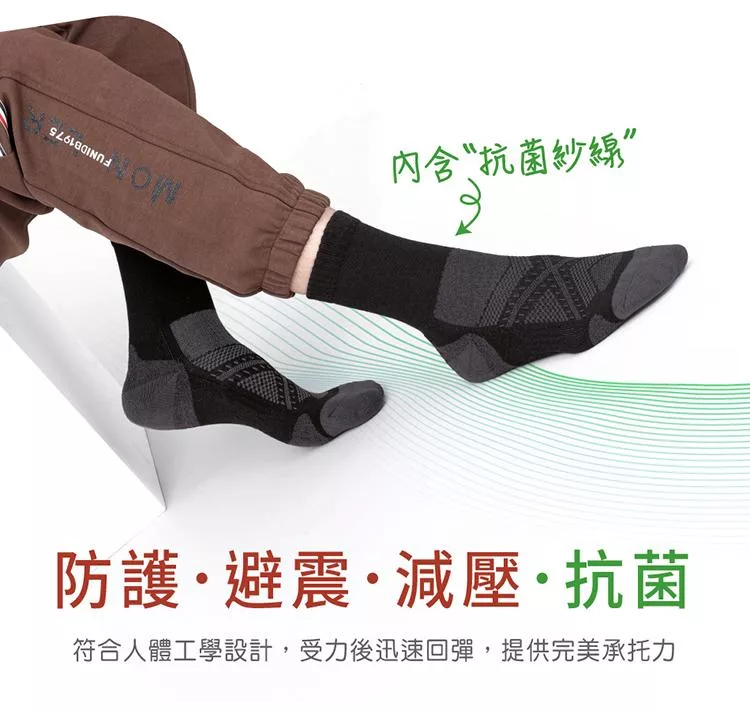 oillio歐洲貴族 氣墊減壓健行襪 保暖襪 加厚舒適 彈力 登山襪 中筒襪 運動襪 黑色