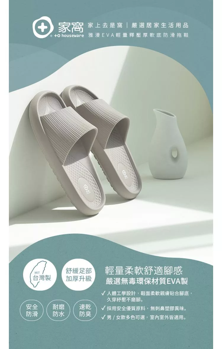 【韓國Dailylike】What a good day! 軟絨厚底室內拖鞋(男) ‧ 灰