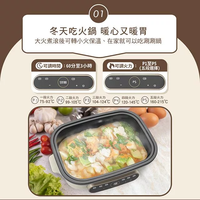 多功能用途:適用於煎、烤、煮、燉等多種料理需求,一機多用。