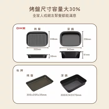 大容量烤盤:適合多人使用,滿足家庭聚餐與派對需求。