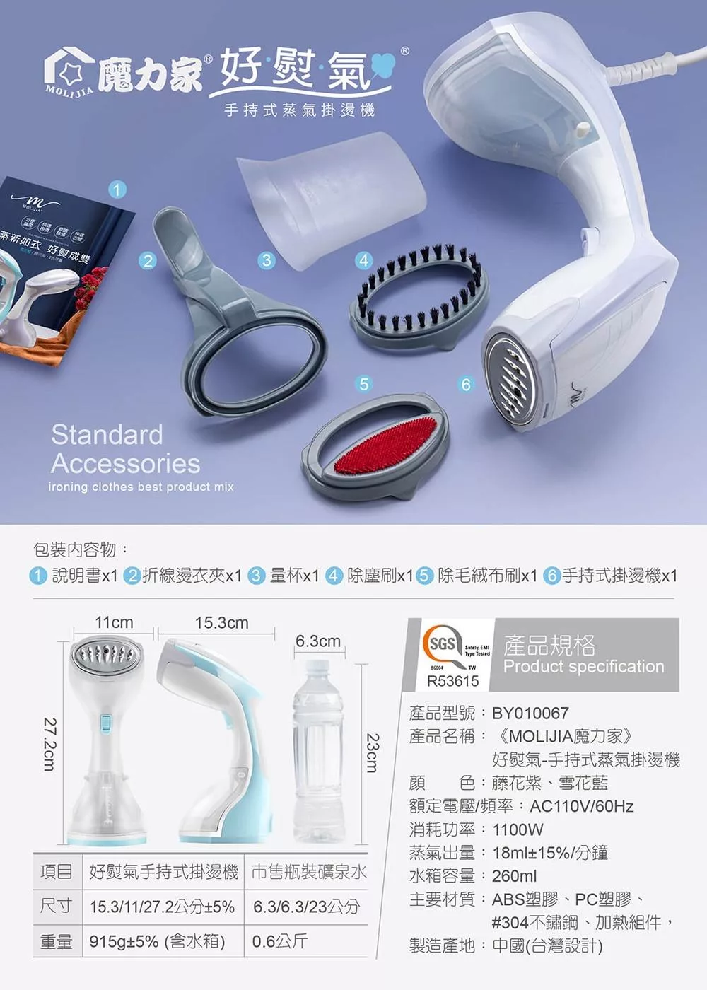 MOLIJIA 魔力家 好熨氣 手持式 蒸氣掛燙機 (藤花紫)