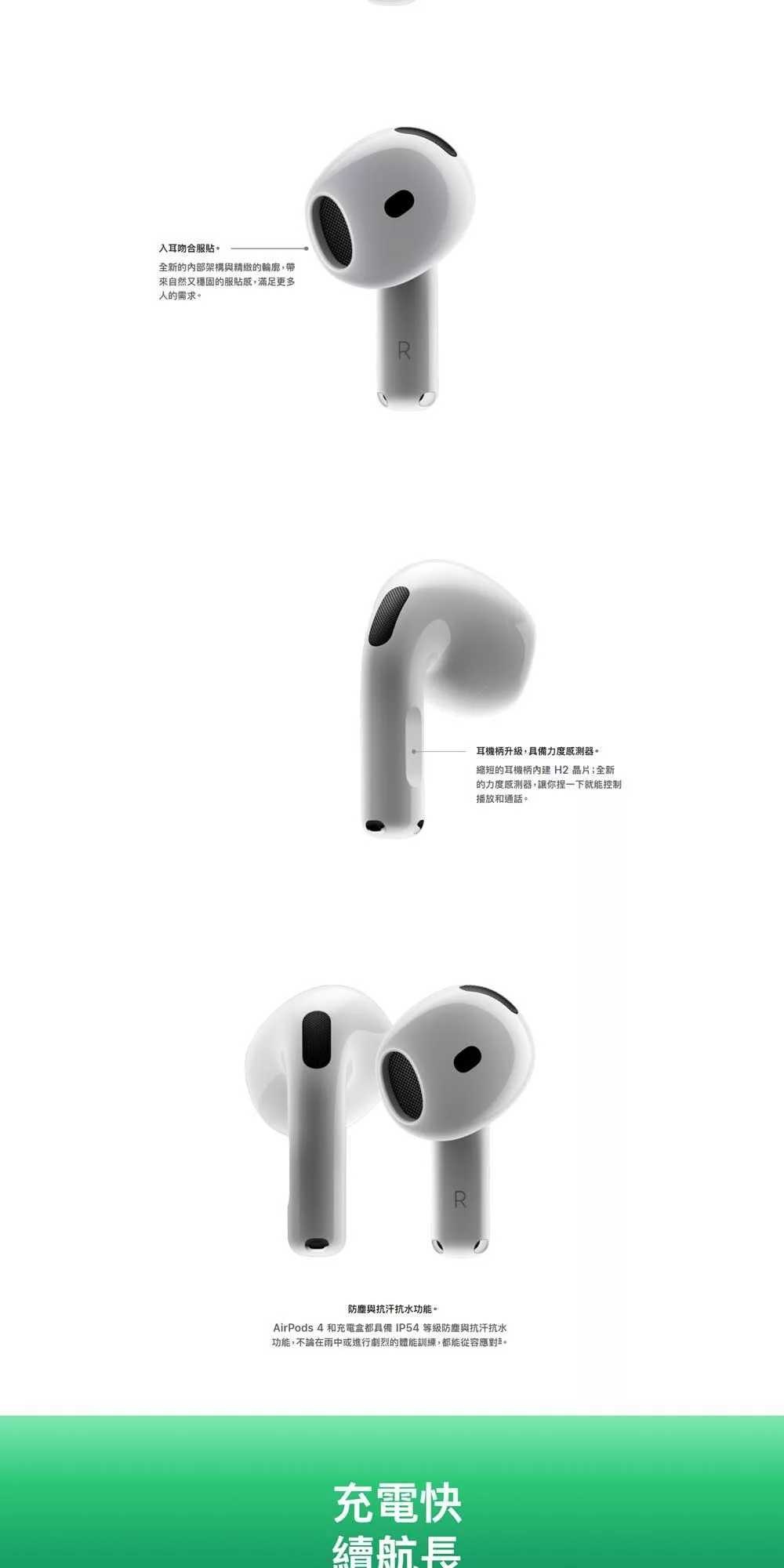 型號:Apple AirPods 4 藍芽耳機 主動式降噪款