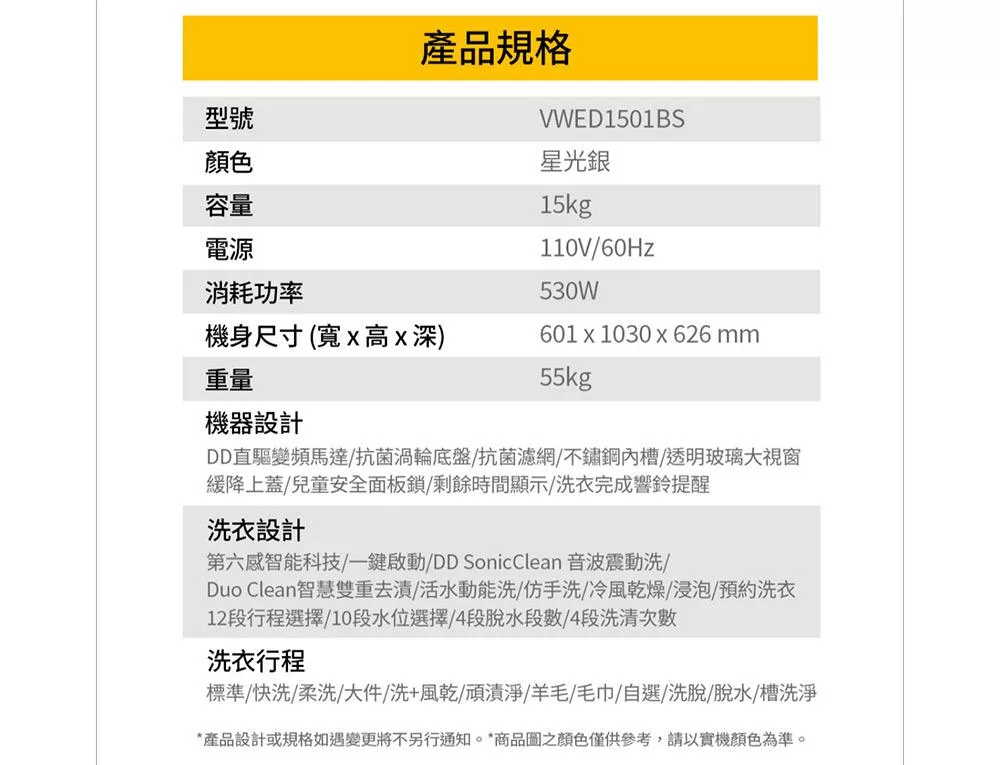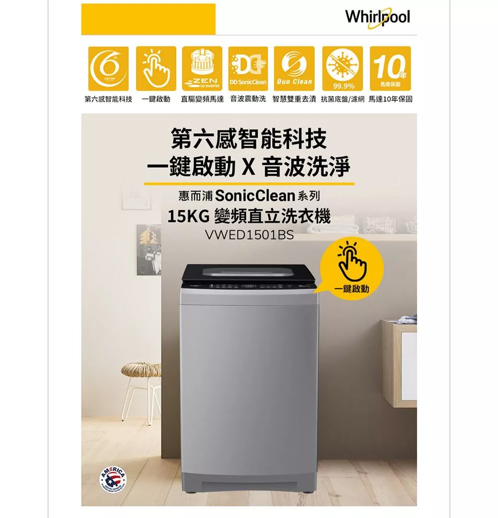 Whirlpool惠而浦15公斤DD直驅變頻直立洗衣機VWED1501BS