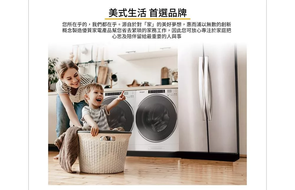 【美國原裝進口】Whirlpool惠而浦-17KG溫熱水滾筒洗衣機 8TWFW5620HW(替代WFW75HEFW)(含基本運費+基本安裝+舊機回收)