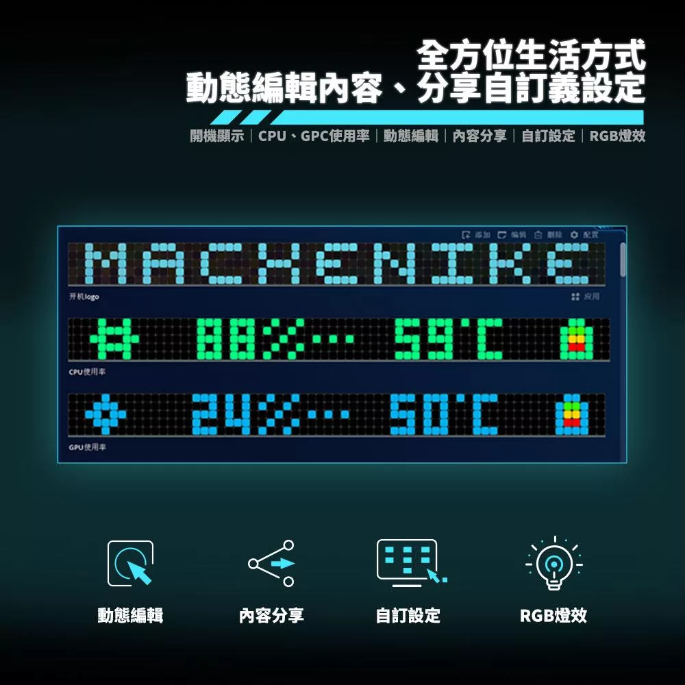 智慧顯示螢幕,可動態編輯內容、開機顯示、CPU使用率及各種貼心提醒,兼具趣味與智能設計。