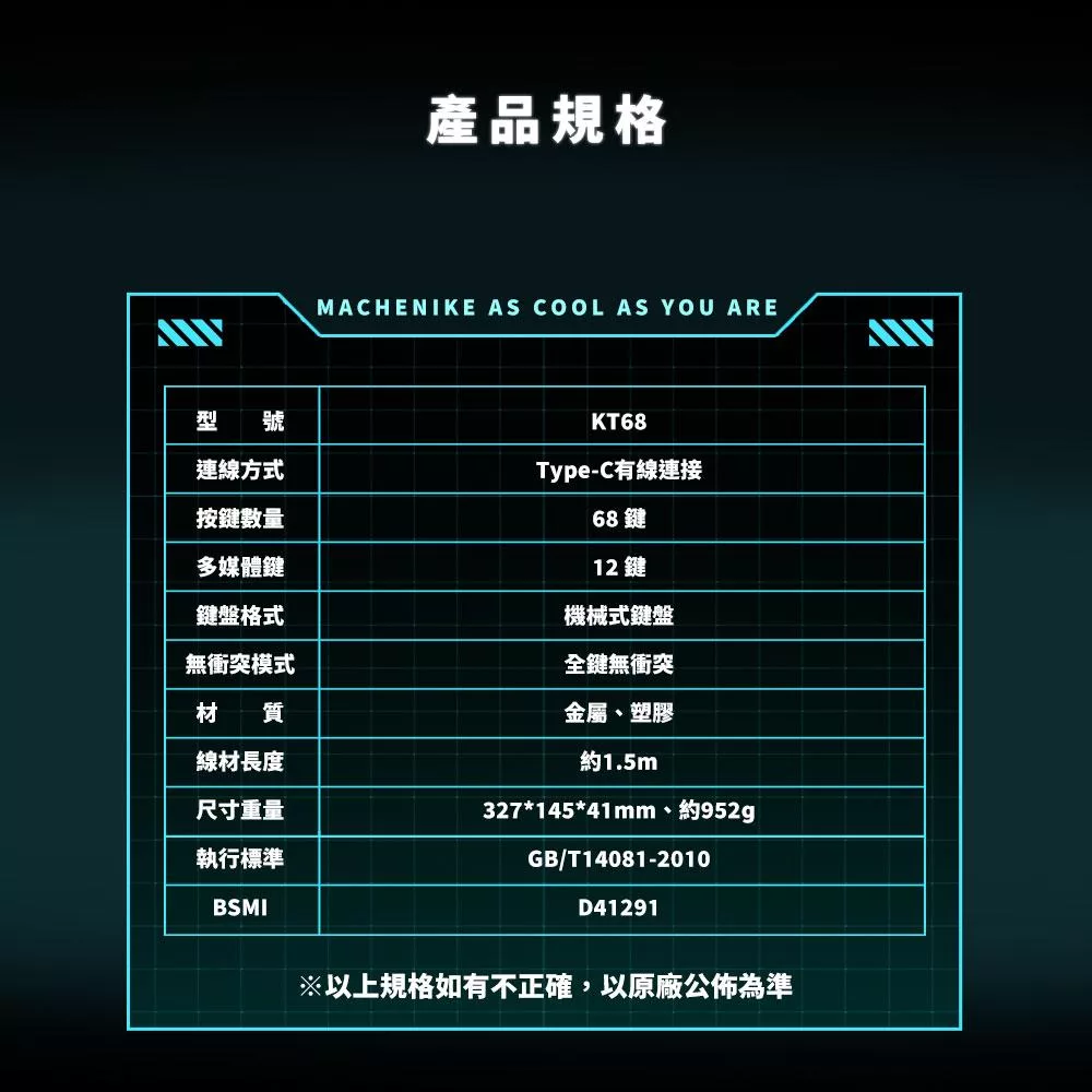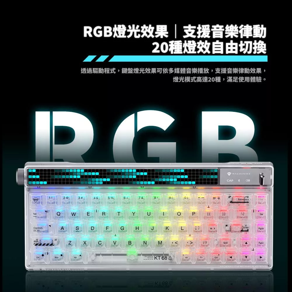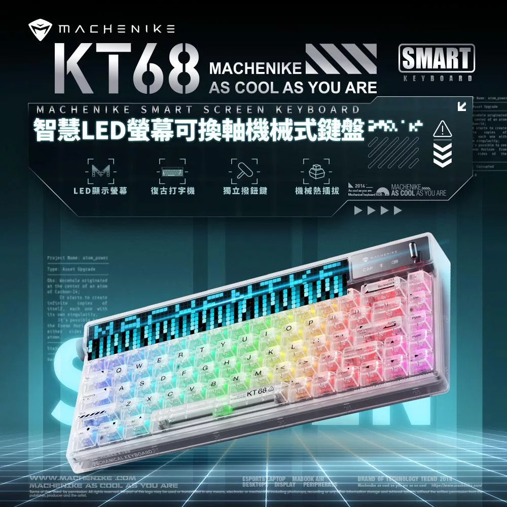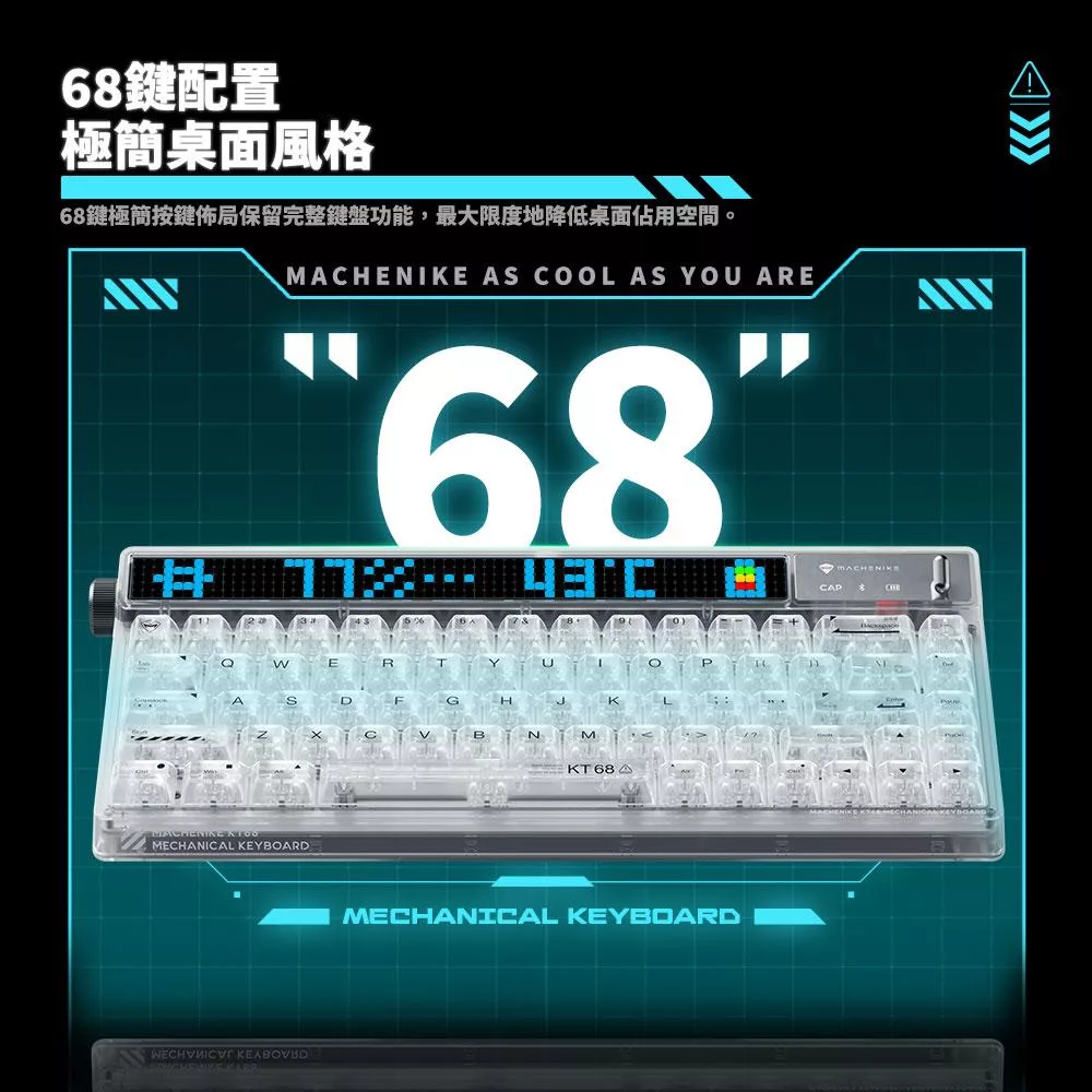 【MACHENIKE KT68 顯示螢幕有線冰心軸機械式鍵盤】