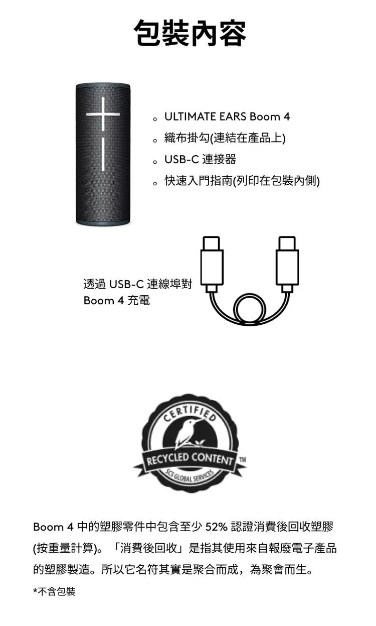 【限時優惠】Ultimate Ears 羅技 UE WONDERBOOM 4 防水防塵便攜藍牙喇叭 第四代 台灣公司貨 質感灰