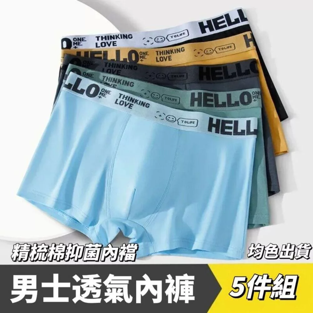 【透氣5件組】精梳棉男士柔感四角內褲 抑菌內襠 男士內褲 舒適透氣 L